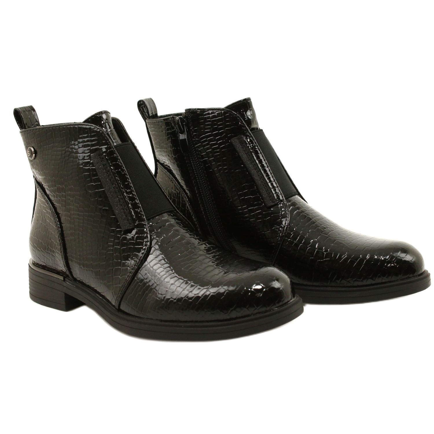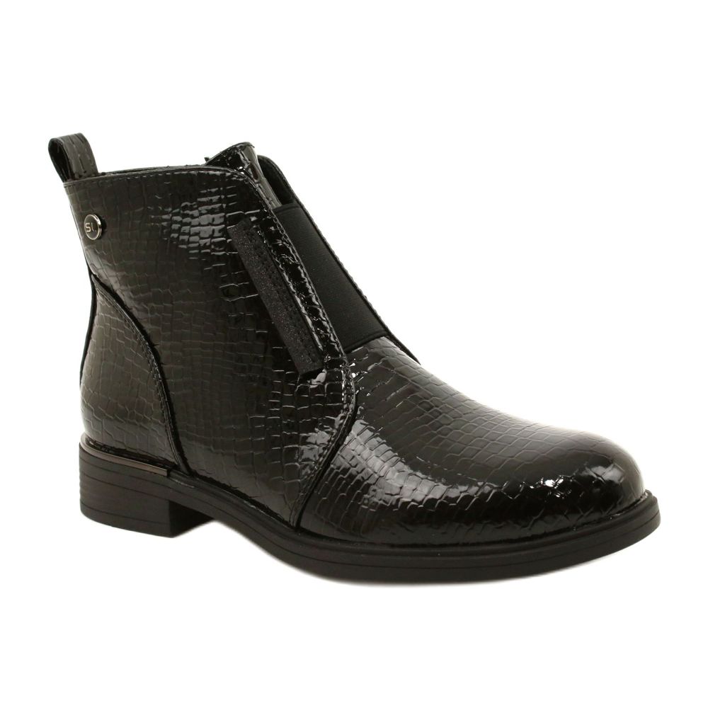 Les bottes chic Sergio Leone BT400 sont une combinaison de conception des femmes et de confort pratique. Fabriqué en cuir écologique verni en noir classique, avec une "échelle" de motifs animaux subtils, ils fonctionneront à la fois dans des stylisations formelles et dans des ensembles de tous les jours. Leur personnage universel vous permet de les assortir facilement à une robe, un pantalon ou une jupe.