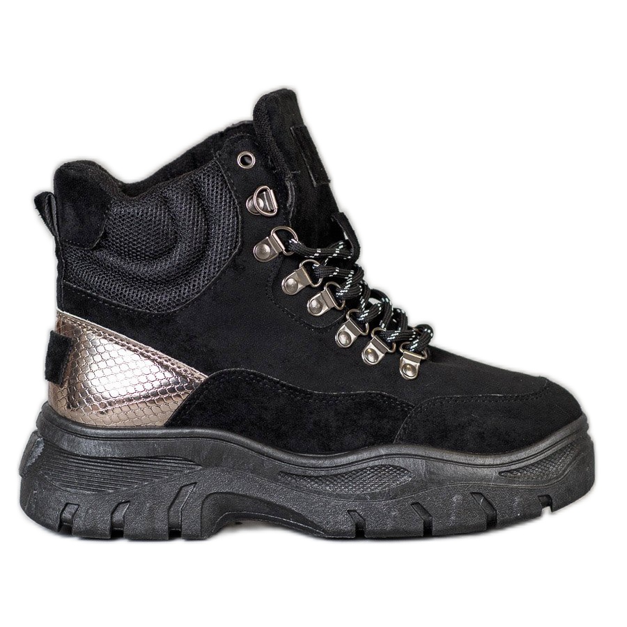 Découvrez les bottines à lacets VICES uniques dans une élégante couleur noire, qui s'accordent parfaitement avec les tendances de l'automne et de l'hiver. Ces bottes de randonnée sont une combinaison parfaite de style classique et moderne, ce qui en fait non seulement un élément fonctionnel mais aussi un élément tendance de tout style.