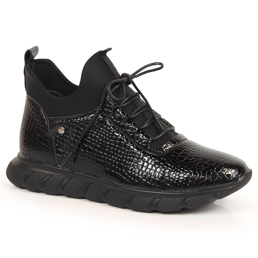 Nous vous présentons les bottines vernies à enfiler pour femmes dans un élégant motif d'entrejambe du célèbre fabricant Vinceza ! Ces chaussures uniques, disponibles dans une couleur noire classique, correspondent parfaitement aux dernières tendances de la mode, tout en offrant confort et fonctionnalité.