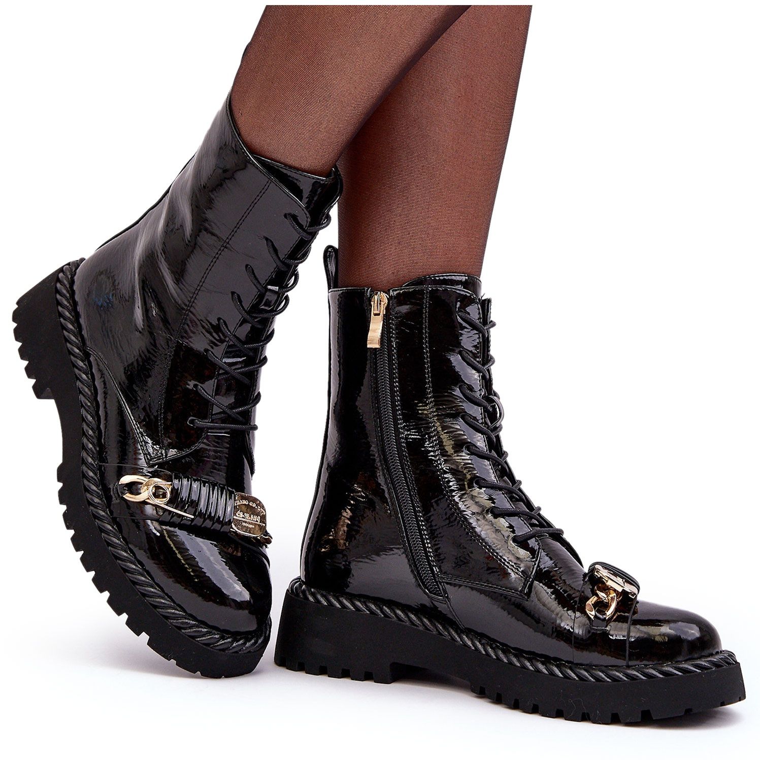 Détails: Bottines Worker Brevetées Pour Femme Avec Décoration Noir S.Barski MR870-67 le noir