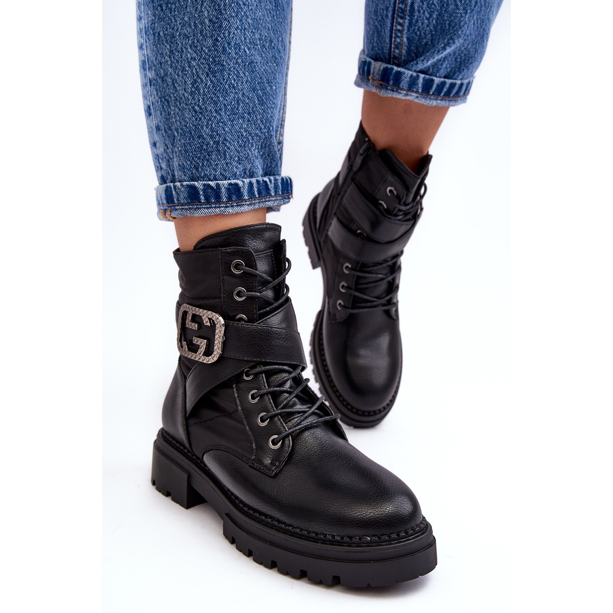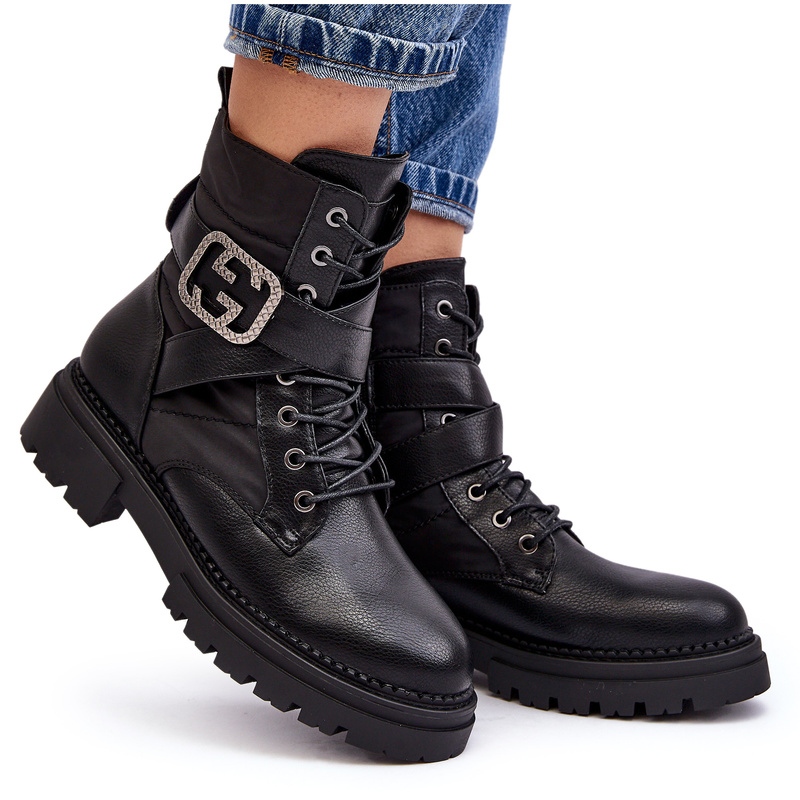 Vous recherchez les bottes parfaites qui combineront un look à la mode avec le confort d'utilisation? Voici des bottes avec une chaîne de cuir Gennee noire qui répondra à vos besoins! Ces bottes élégantes sont placées sur un talon plat et une plate-forme, ce qui garantit le confort de porter toute la journée.