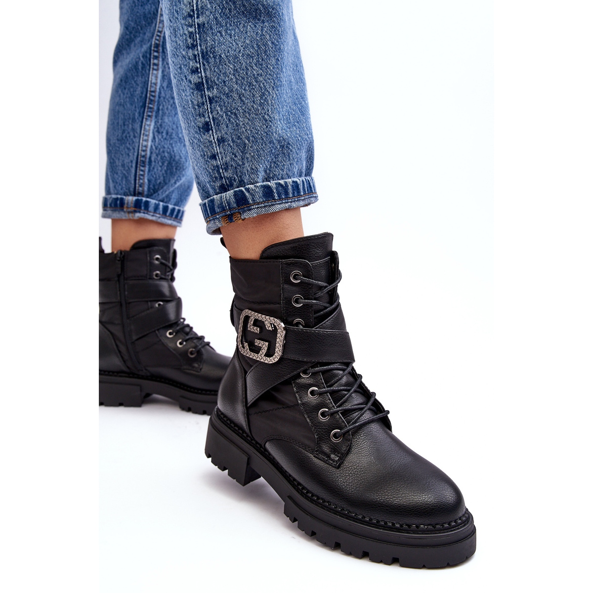 Inna marka Bottines Worker en cuir Gennee noires avec chaîne le noir
