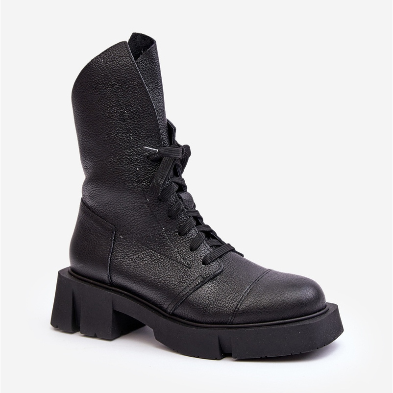 Détails: Bottines Worker En Cuir Pour Femme Sur Un Talon Plat Massif Zazoo 976A Noir le noir