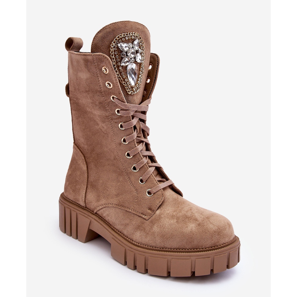 Détails: PS1 Bottines Worker En Daim Avec Décoration De Bijoux, Beige Foncé Marx