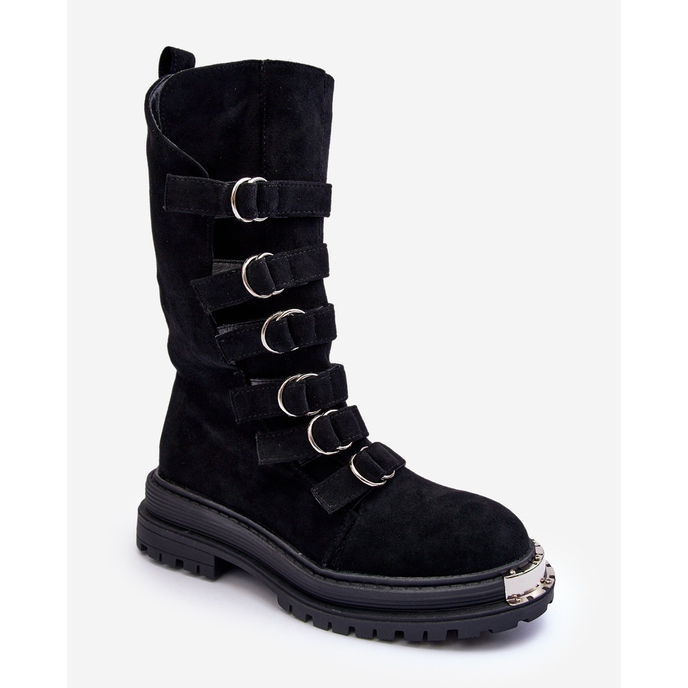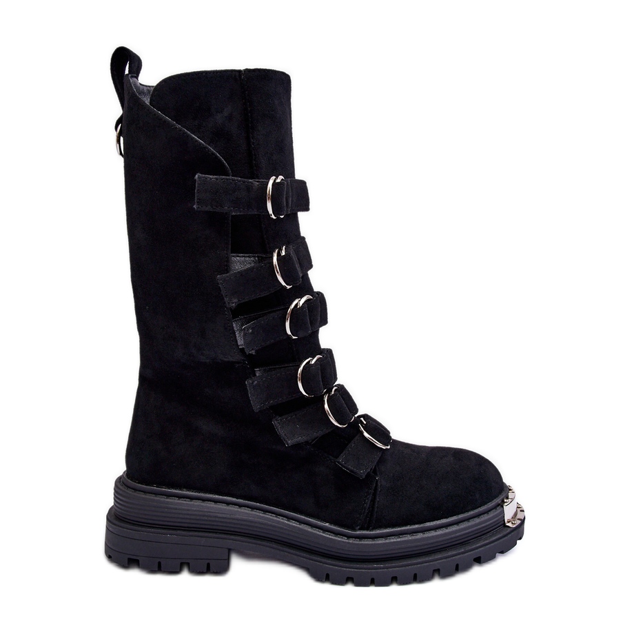 Suede High Boots Workers With Stripes - Black Elnatea