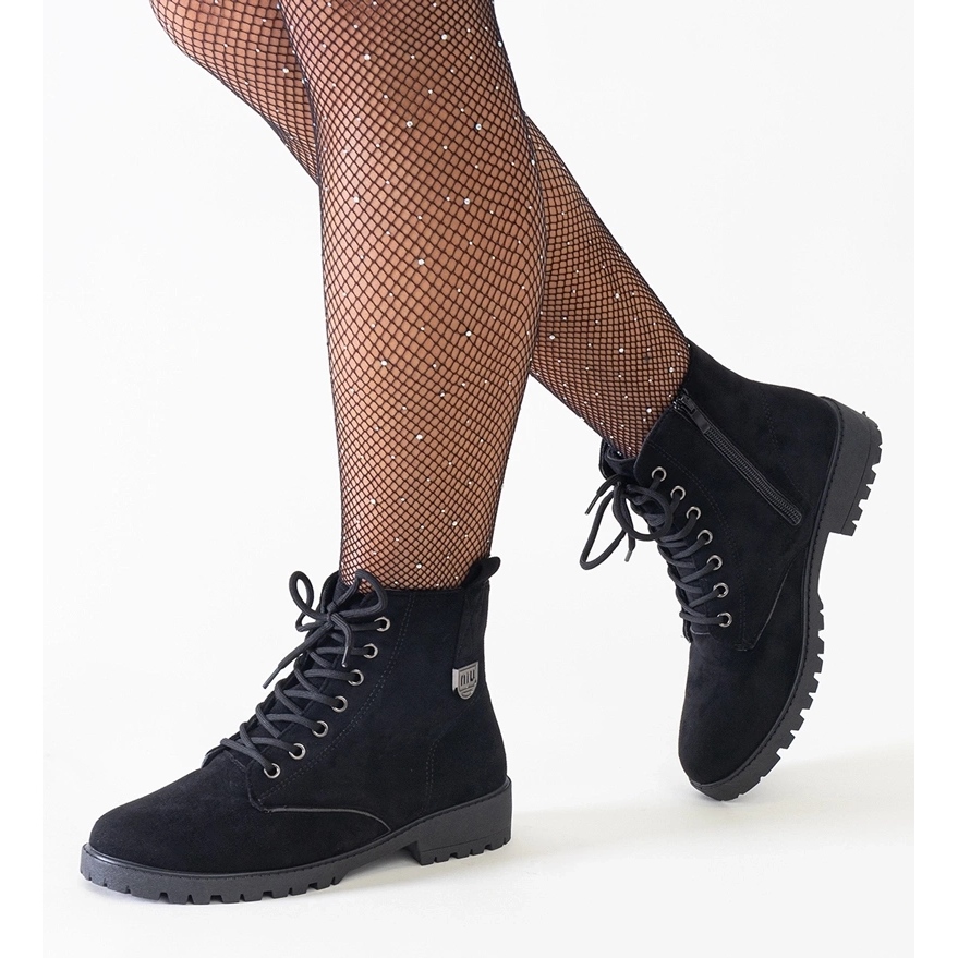 Détails: Bottines workwear en éco-daim noir sur la plateforme Madana le noir