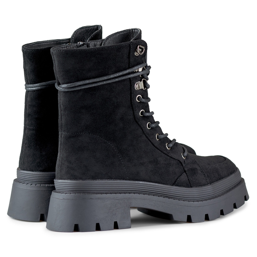 Détails: Bottines workwear femme en daim noir à semelle épaisse le noir