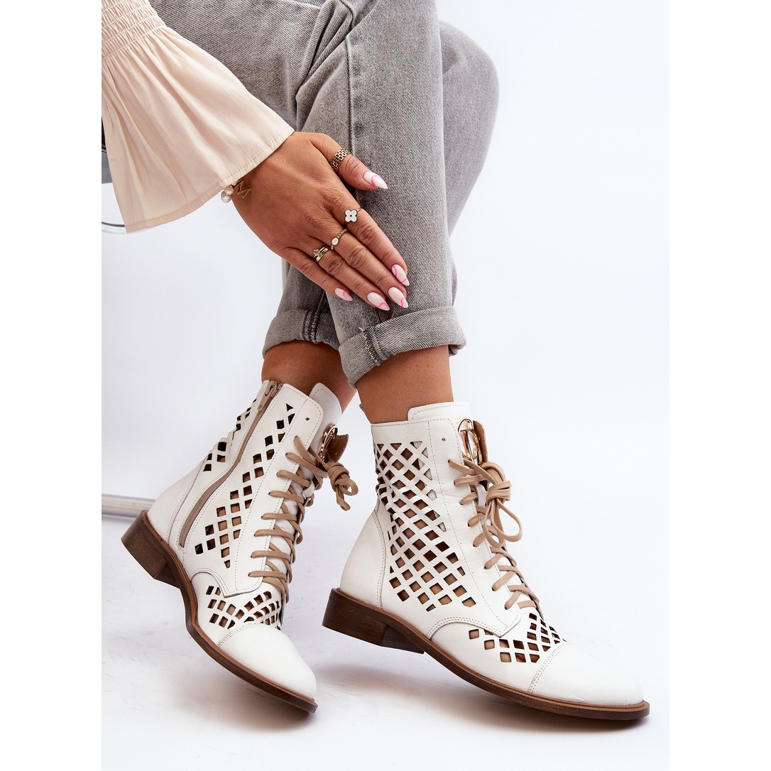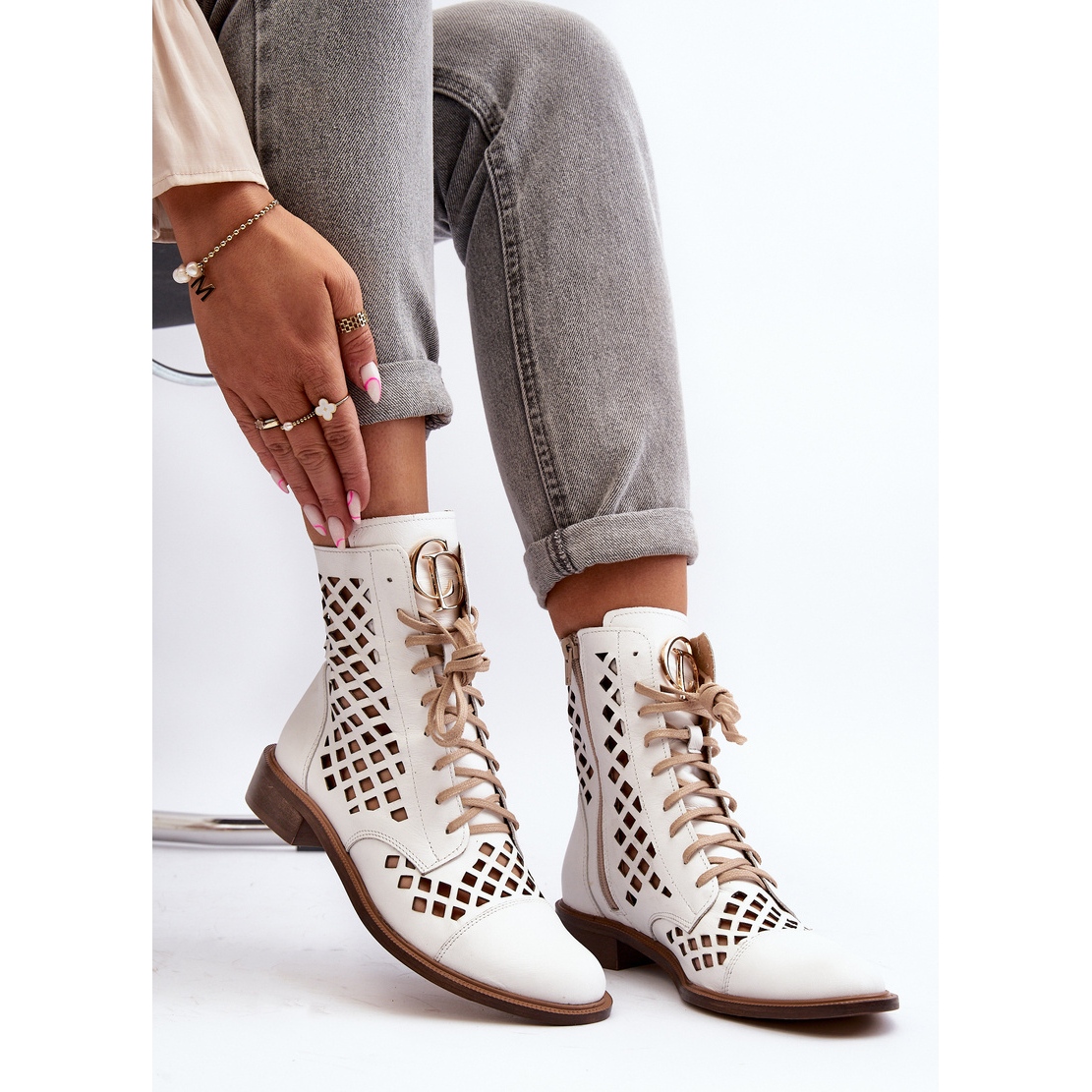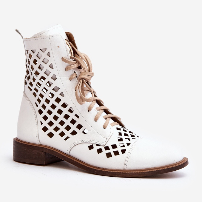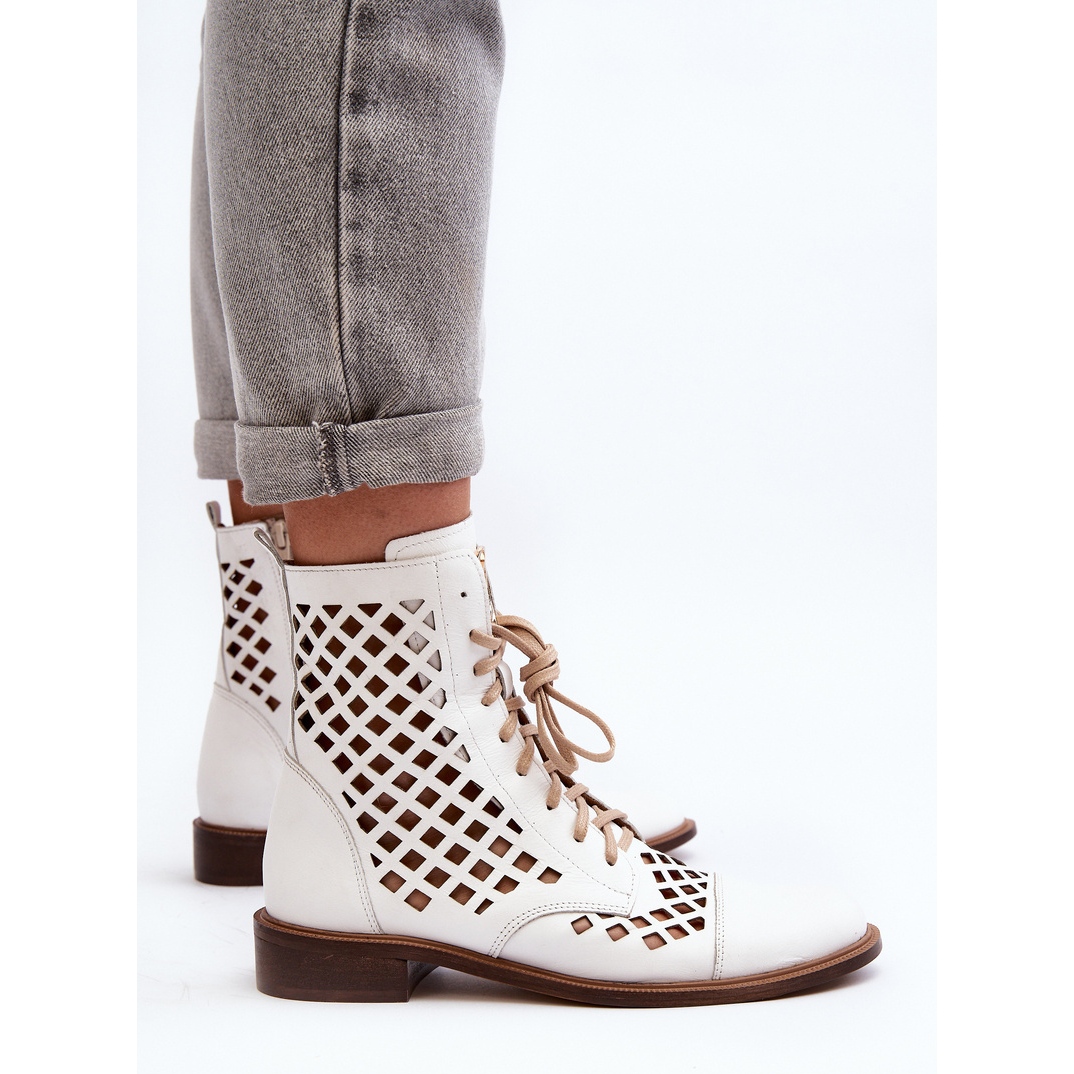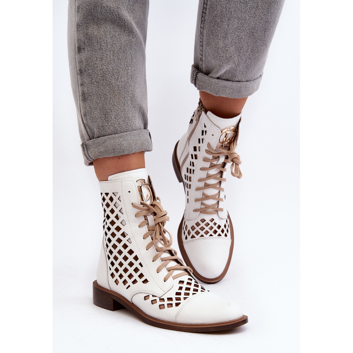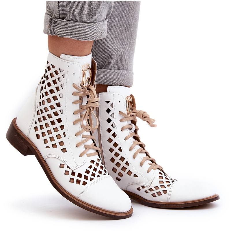 Détails: Bottines Zazoo 2695 en cuir ajouré, blanc blanche