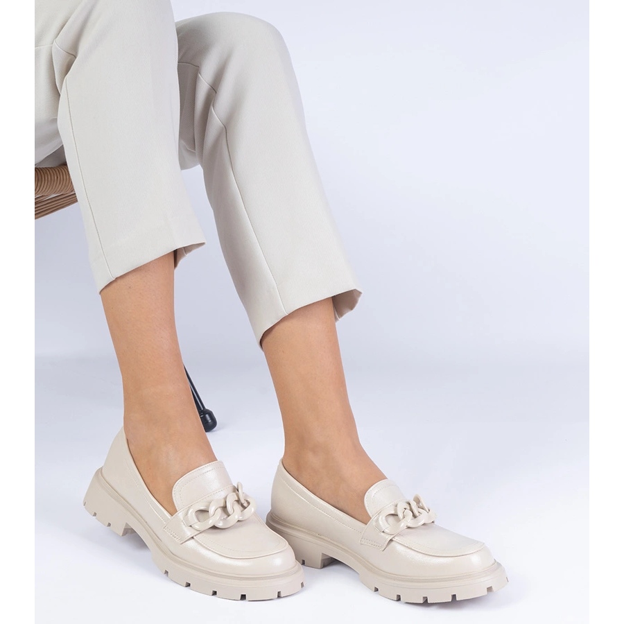 Les mocassins vernis beiges avec une chaîne sont un incontournable dans la garde-robe de chaque femme qui valorise la mode, le réconfort et l'élégance. N'attendez pas - découvrez votre nouveau modèle préféré pour chaque occasion!