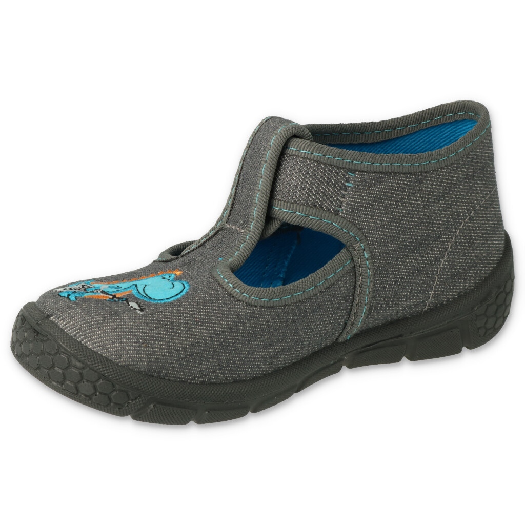 Slippers pour enfants Befado pratiques et confortables, modèle 531p098, conçu pour un usage quotidien à la maison et à la maternelle. La couleur gris neutre et gris s'adapte facilement à différents styles, et la fabrication solide garantit le confort et la stabilité.