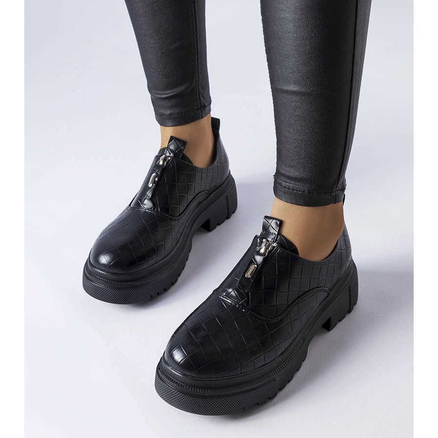 Inna marka Brogues noires avec gaufrage de Travers le noir
