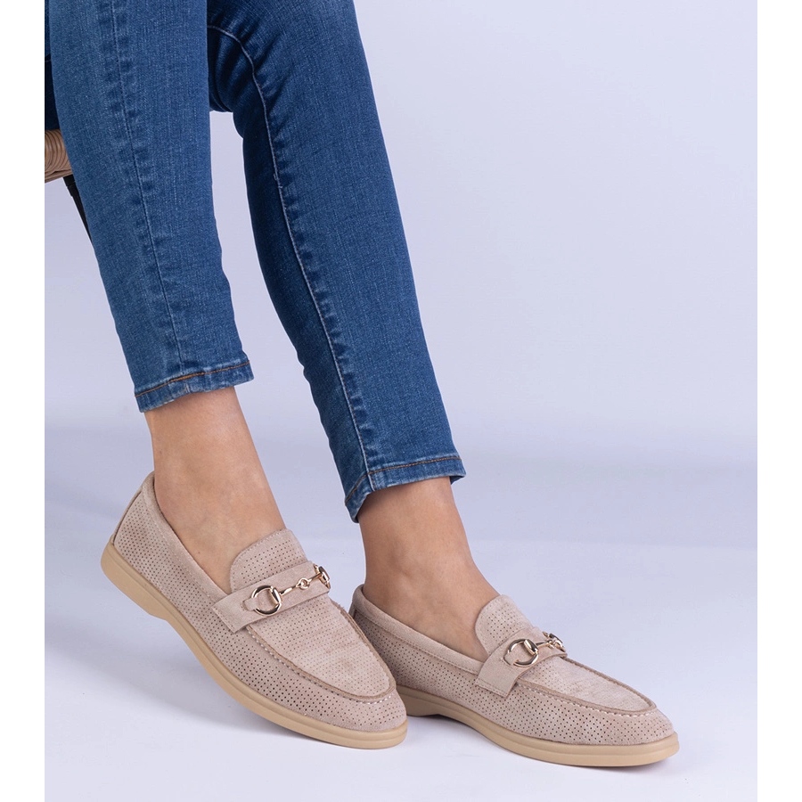 La conception ouverte rend les mocassins légèrement respirants, ce qui les rend idéaux pour les jours plus chauds. Leur couleur brune élégante avec une teinte délicate de L. khaki va bien avec une semelle beige en caoutchouc, ce qui en fait un élément universel de vêtements. Un avantage supplémentaire est la chaîne dorée exceptionnelle, qui leur donne un caractère unique et en fait un accent à la mode dans chaque stylisation.