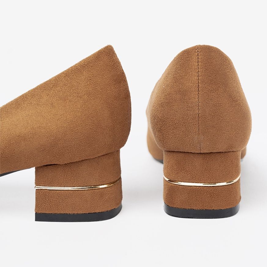 Les pompes sont en cuir en daim écologique, qui non seulement souligne leur apparence élégante, mais les rend également respectueuses de l'environnement. La sangle décorative leur donne du style et les rend spéciales. Un nez rond et un talon raidis rendent les chaussures non seulement belles, mais aussi fonctionnelles et confortables.