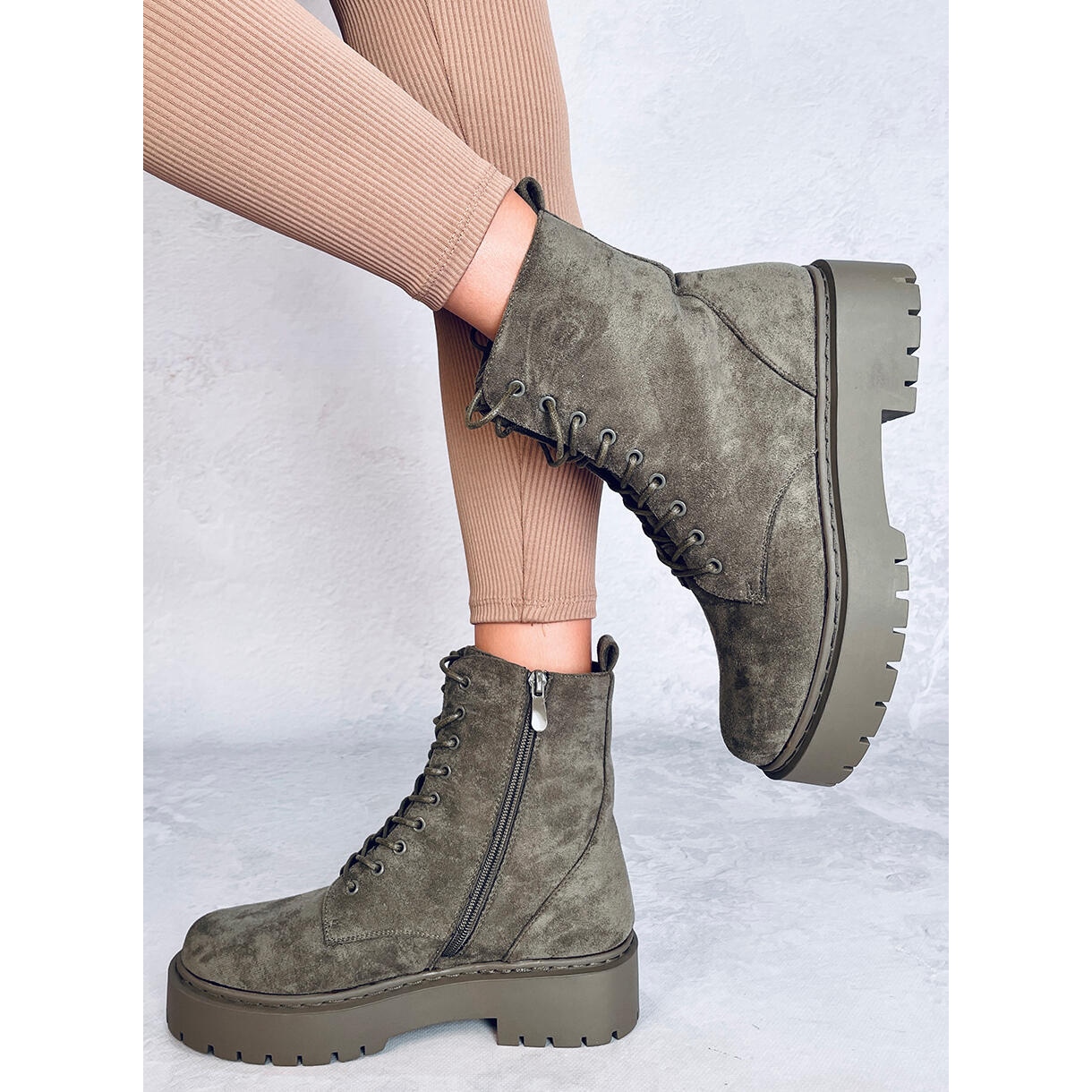 Burse Green sont des bottes de travail à lacets pour femme. Un modèle tendance sur une plateforme qui ajoute quelques centimètres de hauteur supplémentaires. Ils sont destinés au style vestimentaire de tous les jours, en daim écologique. L'intérieur est doublé d'une fourrure chaude et délicate qui apporte une chaleur supplémentaire lors des journées les plus froides. Les chaussures sont équipées d'une fermeture éclair pratique sur le côté.
