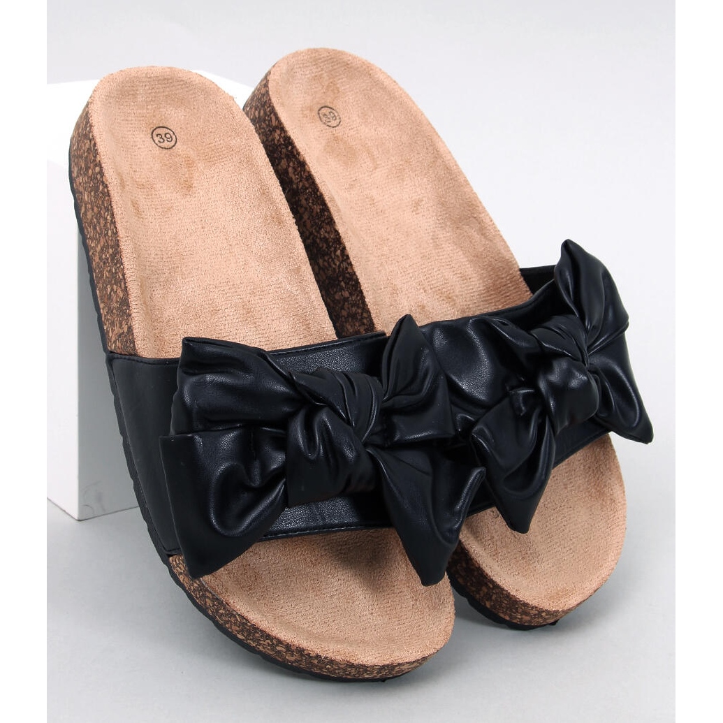 Inna marka Bussi Chaussons en liège noir avec nœud le noir