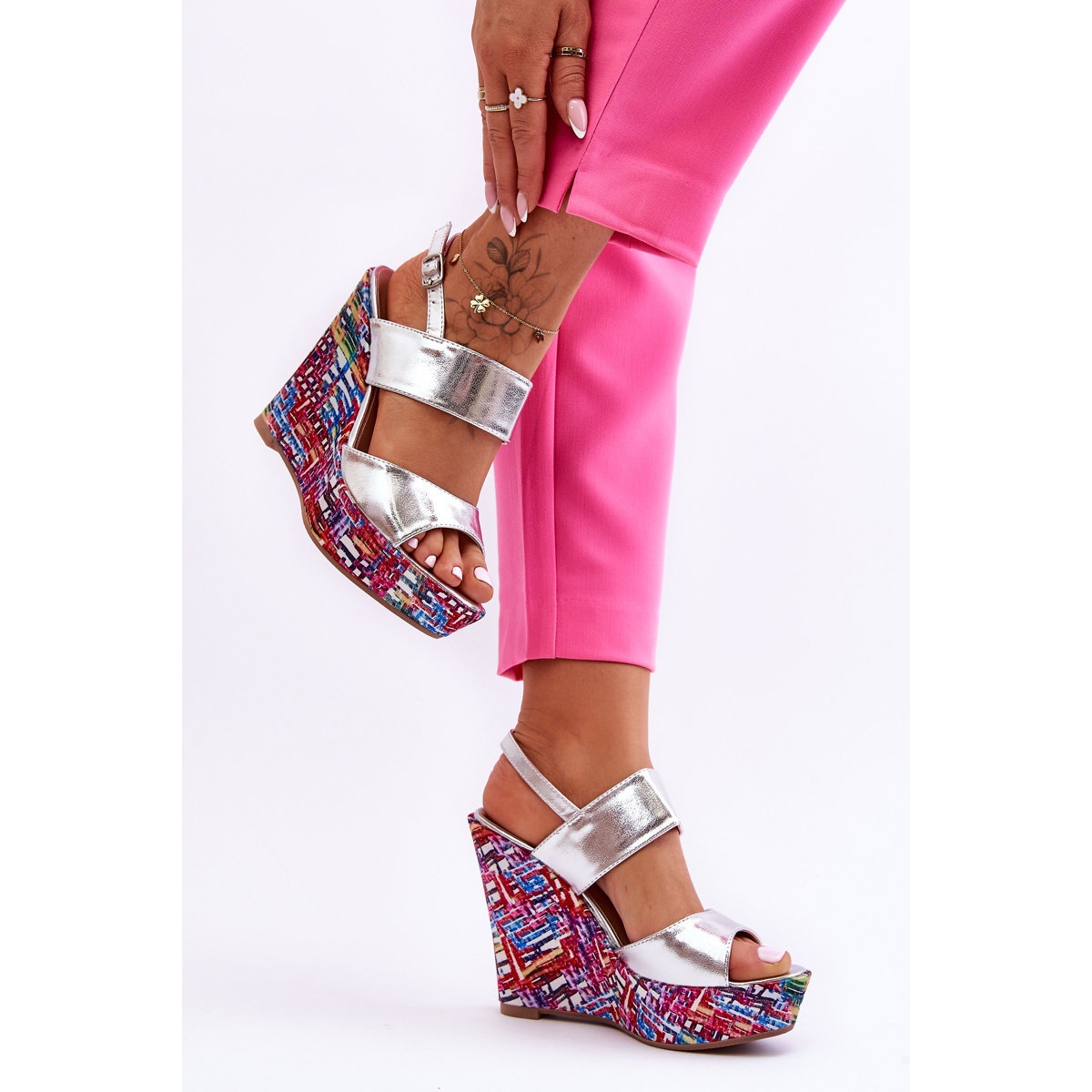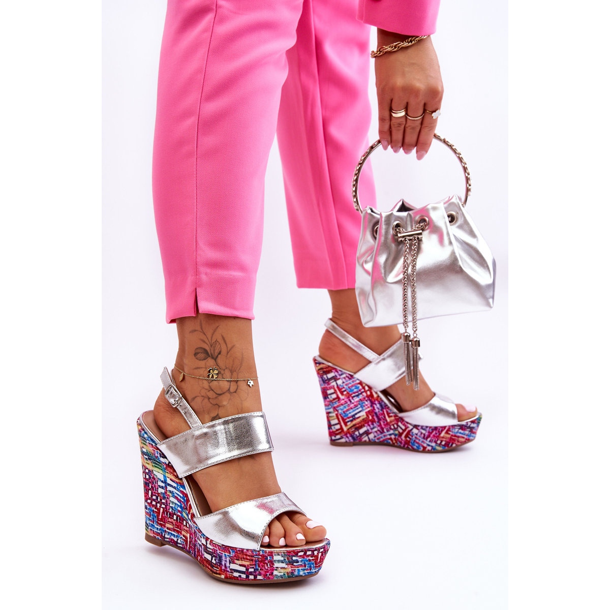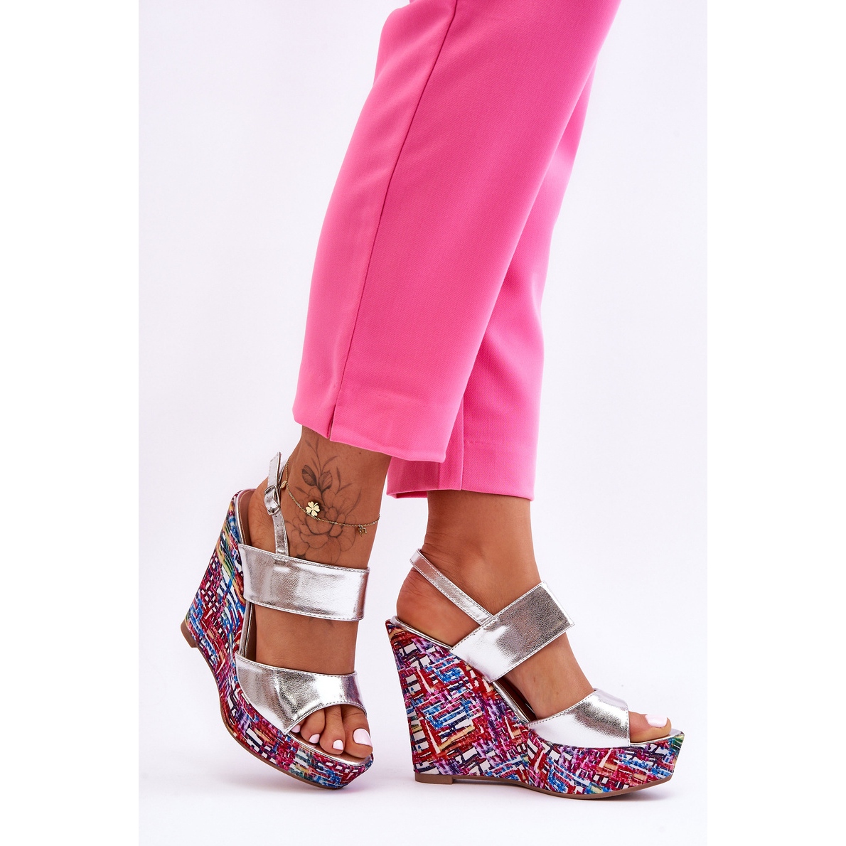 Sandales Calderia élégantes et confortables dans une édition métallique et argentée est une proposition idéale pour la saison printemps / été. Fabriqués en combinaison de cuir écologique et de matériaux textiles, ils combinent un look élégant avec une commodité d'utilisation. Le coin élevé (12 cm) et la plate-forme (4 cm) ont optiquement mince la figure, et la semelle en caoutchouc complète avec des propriétés anti-glissade garantit la stabilité sur diverses surfaces.