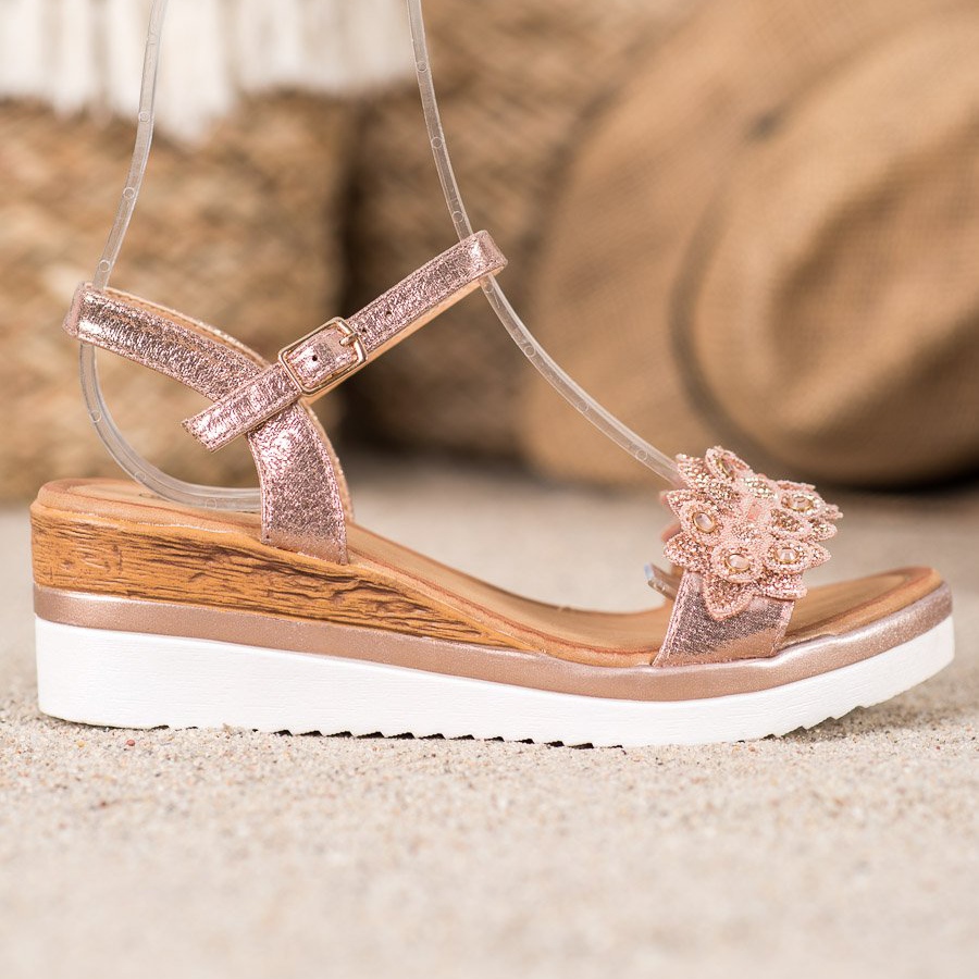 Découvrez l'élégance et le confort dans le nouveau modèle de sandales de la marque Mannika - des compensées élégantes avec des décorations en or rose. Ces chaussures uniques sont une combinaison parfaite de style et de fonctionnalité qui séduiront toutes les femmes qui souhaitent mettre en valeur leur beauté au quotidien et lors d'occasions spéciales.