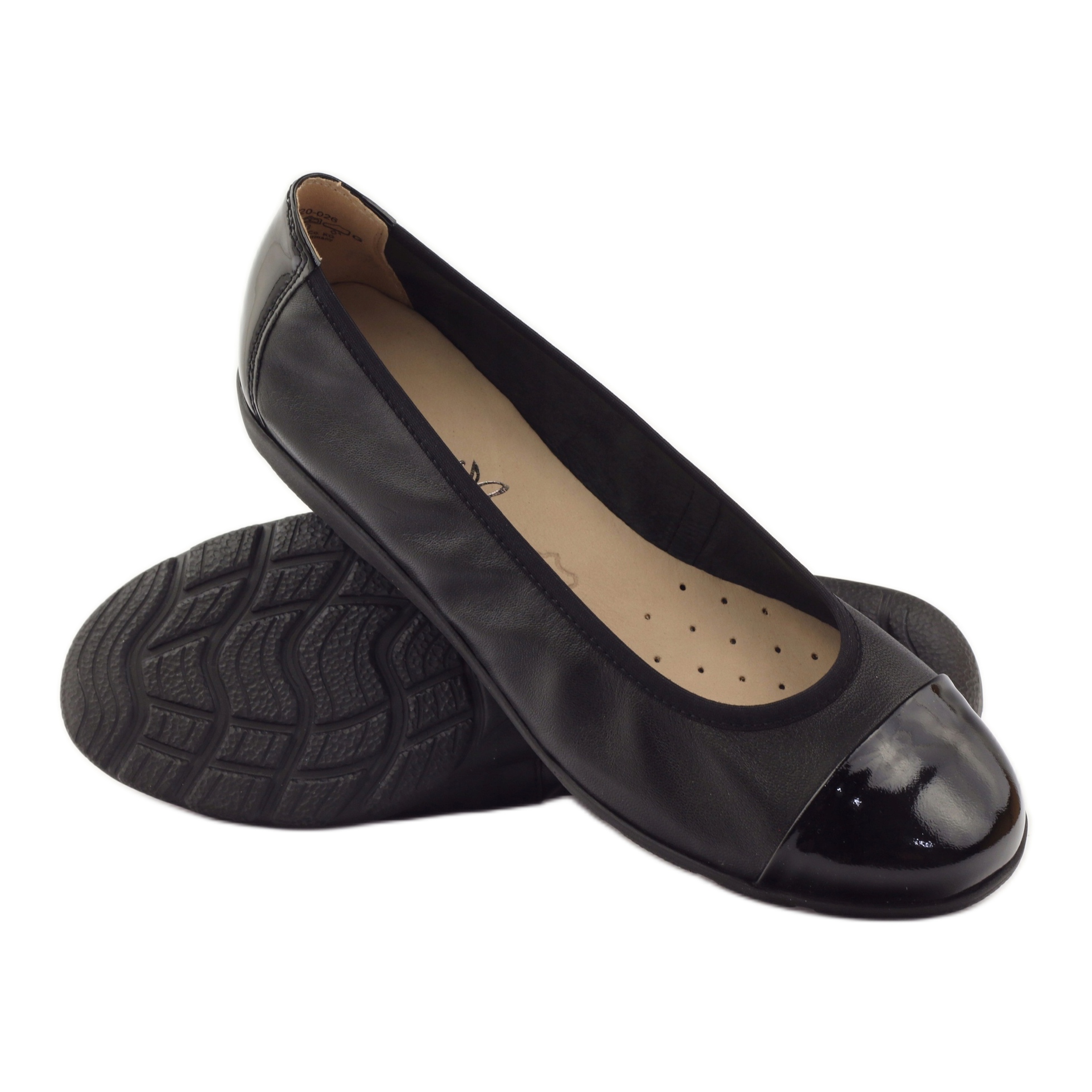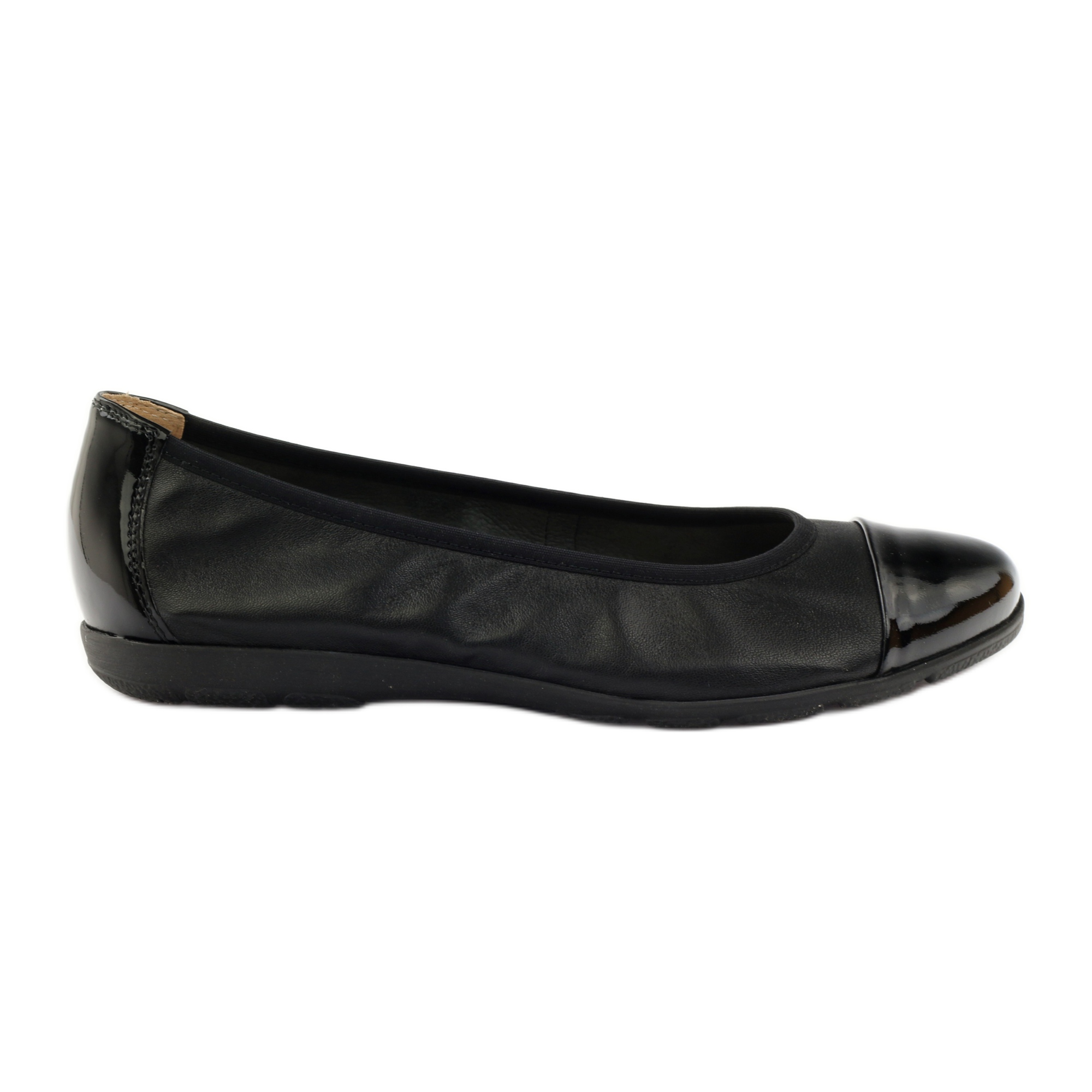 Nous vous présentons les ballerines pour femmes Caprice 9-22152-28, élégantes et extrêmement confortables, de couleur noire, qui sont la combinaison parfaite de style et de fonctionnalité. Fabriquées en cuir naturel souple de haute qualité, ces belles chaussures se caractérisent par de subtils empiècements en cuir verni noir, qui leur confèrent un caractère unique.