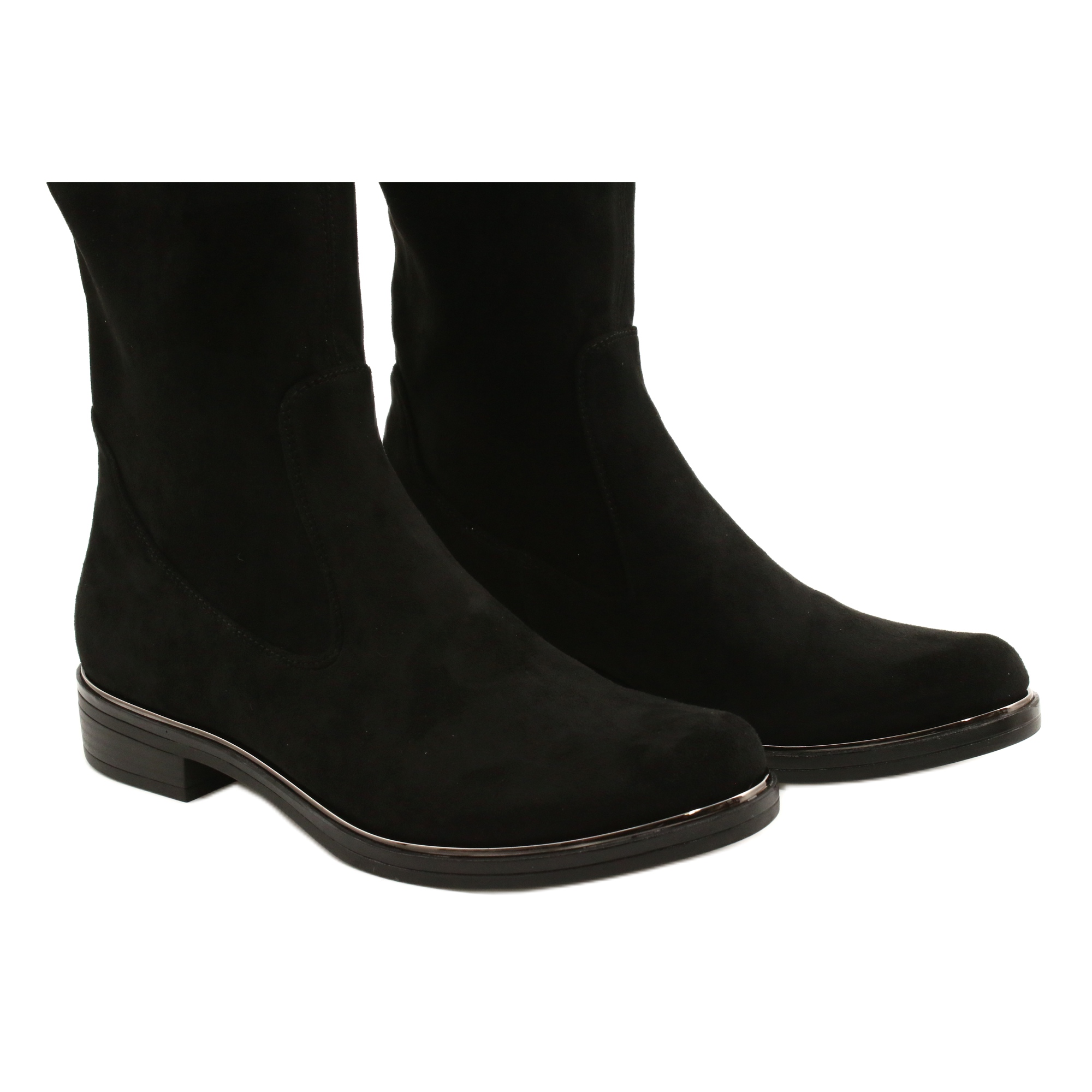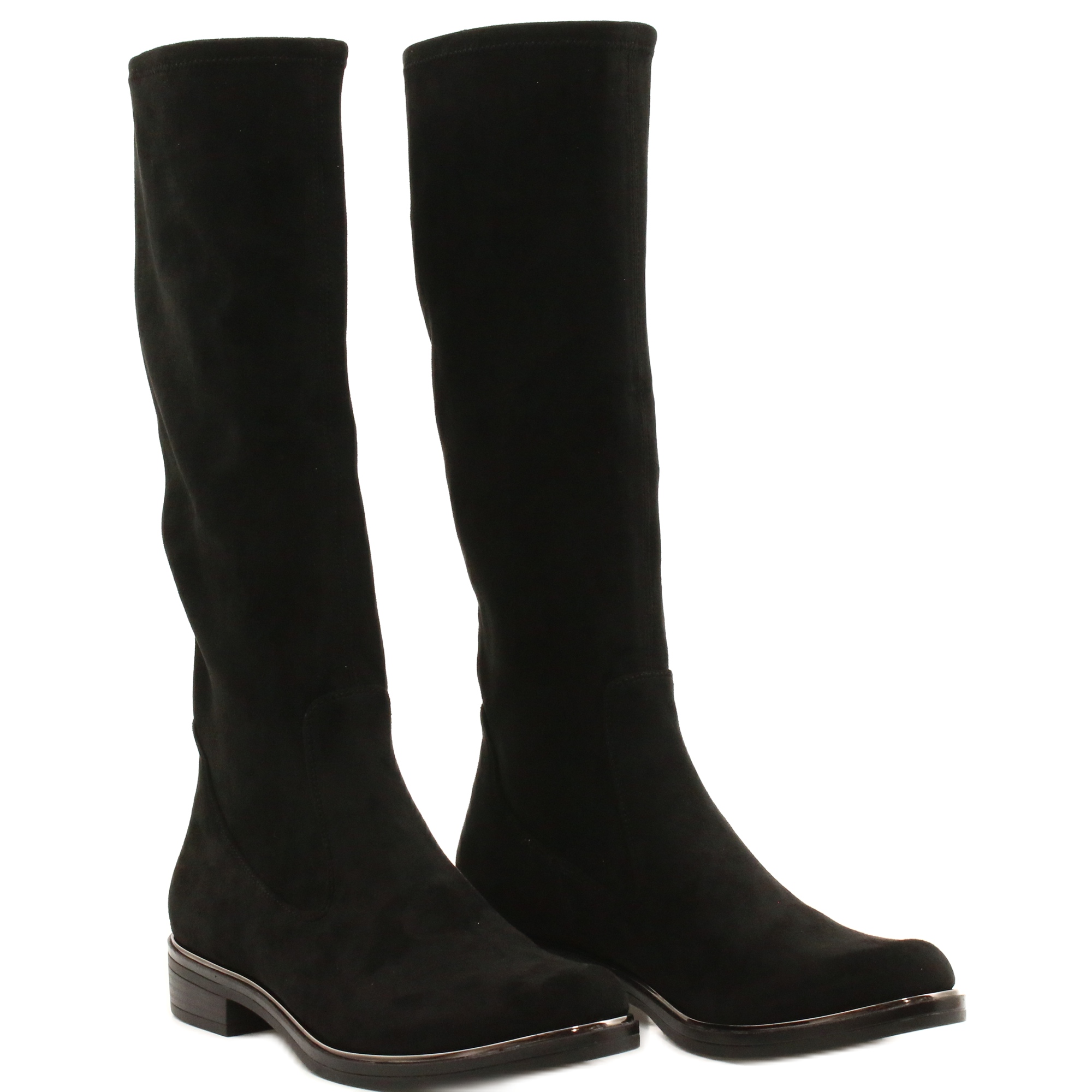 Des bottes noires élégantes de Caprice en matériau extensible charnu et en daim, qui grâce à la flexibilité s'adapte parfaitement à la jambe. Une coupe classique et intemporelle atteignant le genou fait correspondre les bottes à la fois tous les jours et les stylisations plus formelles.