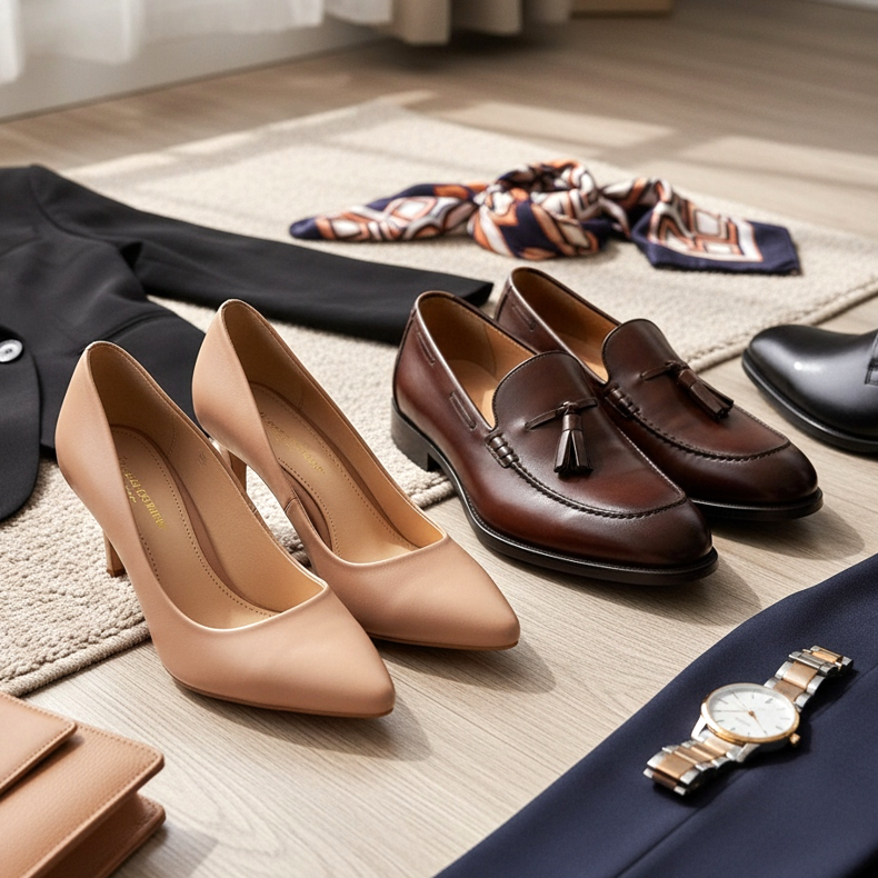 Chaque garde-robe capsule a besoin d’une paire de chaussures pour les occasions plus formelles. Pour les femmes, les escarpins classiques à talons mi-hauts (5-7 cm) noirs ou nude seront le choix parfait. Ce modèle fonctionnera aussi bien au bureau que pour un dîner au restaurant ou une fête de famille. Pour les hommes, des mocassins élégants ou des derbies dans une nuance de marron foncé ou de noir feront l'équivalent.