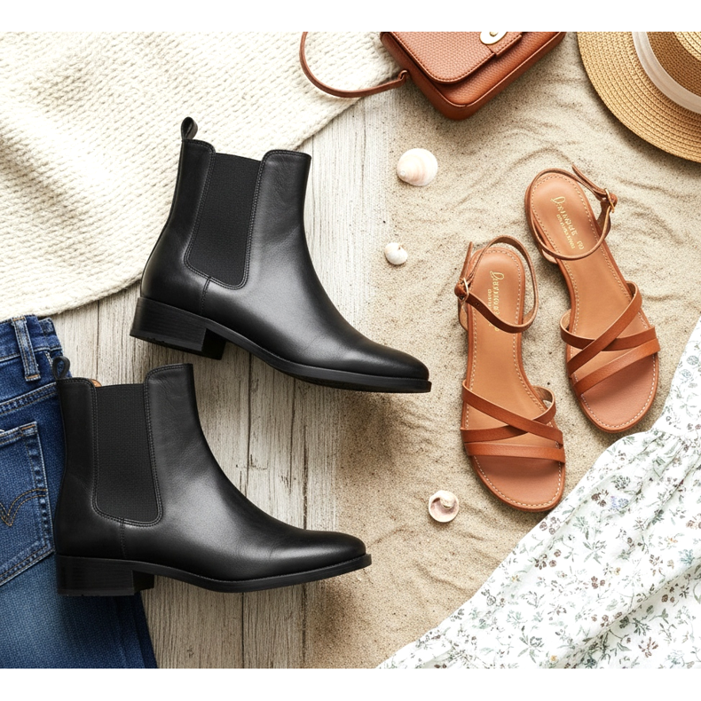 La troisième et la quatrième paire : des bottines pour l'automne et des sandales pour l'été