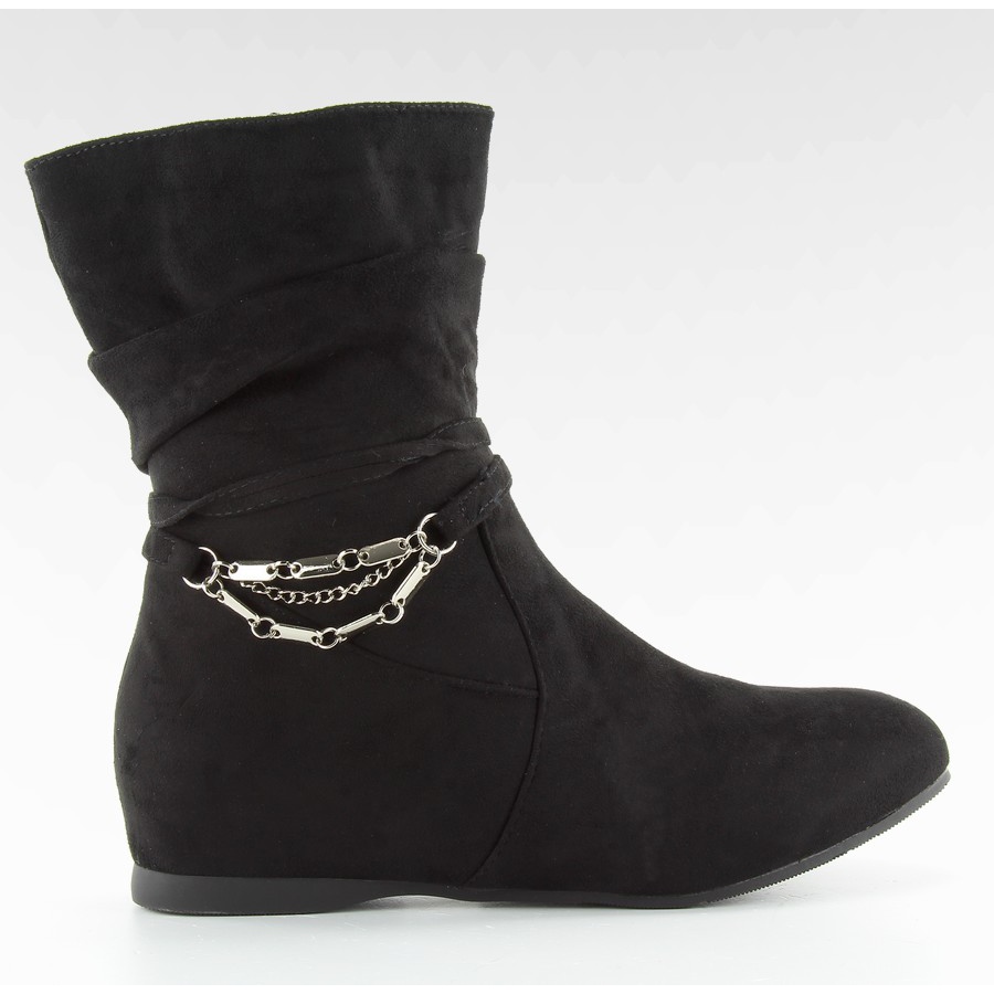Bottines noires PE105 avec tige à volants - des bottines pour femmes élégantes et confortables qui s'adapteront parfaitement au style de tous les jours. Fabriquées en cuir suédé noir profond, elles possèdent un talon haut caché de 5 cm qui allonge optiquement la jambe sans sacrifier le confort. La tige froncée avec une application décorative au niveau de la cheville ajoute du caractère, et la fermeture éclair à l'intérieur permet de l'enfiler facilement et rapidement. Le tout est doublé d'une fourrure délicate, ce qui rend les chaussures chaudes et agréables à porter - parfaites pour les journées plus froides.