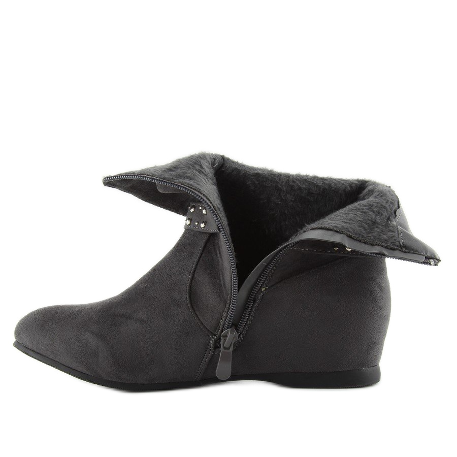 Découvrez le style unique et le confort qu'offrent les bottines pour femme de la collection BUTYMODNE de couleur grise (PE103 Grey). Ces chaussures élégantes avec un talon caché de 5 cm de haut ont été conçues pour un usage quotidien. Leur tige à volants n'attire pas seulement l'attention, mais assure également un ajustement parfait à la jambe, ce qui les rend parfaits pour toutes les occasions.