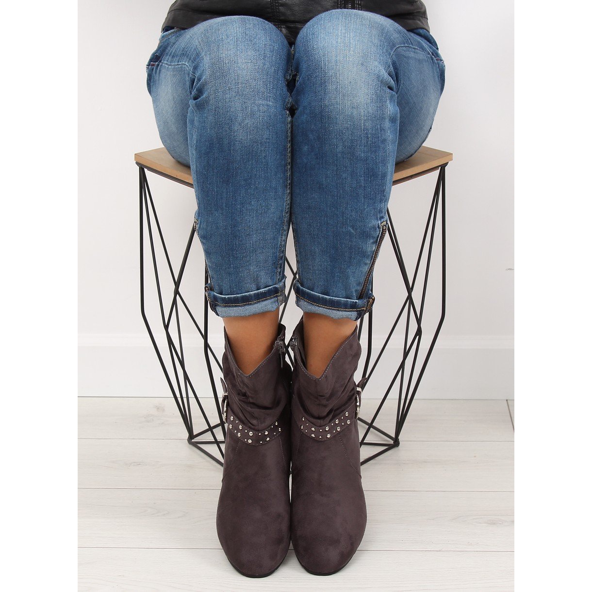 Un avantage particulier de ce modèle est la sangle décorative avec des clous, qui ajoute un caractère moderne et distingue les bottes des autres. Grâce à la fermeture éclair pratique à l'intérieur, enfiler et enlever les chaussures devient facile et pratique.