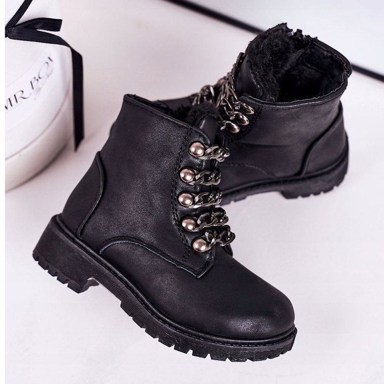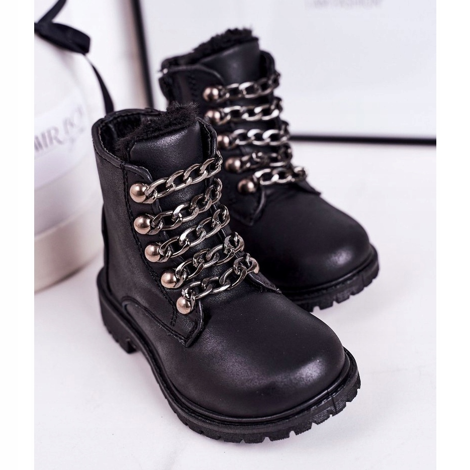 Les bottes de marche isolées pour enfants en cuir écologique sont la solution parfaite pour les journées plus froides. Leur tige haute, de 8 cm de hauteur, offre un excellent maintien de la cheville, et l'insert isolant pour chaussures garantit un confort thermique même par temps glacial. Les chaussures noires avec l'ajout d'une chaîne rock attirent l'attention et s'intègrent en même temps dans les tendances de la mode pour les enfants.