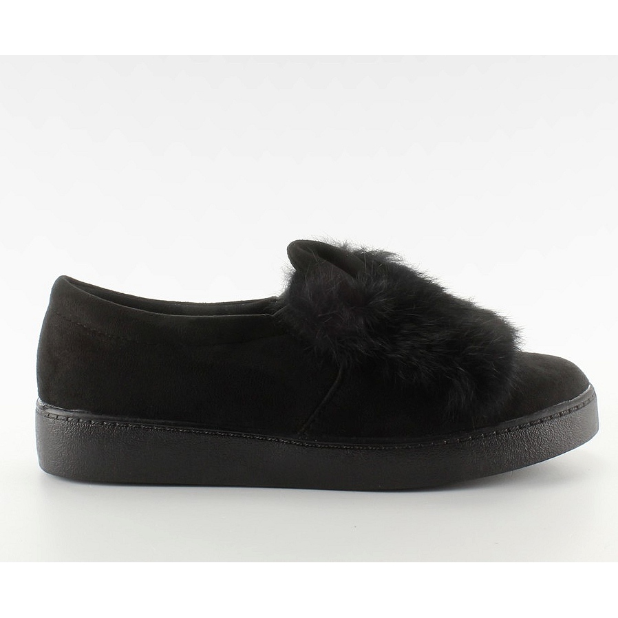 Adorables baskets Hunny Bunny GU01 - noires avec fourrure et oreilles