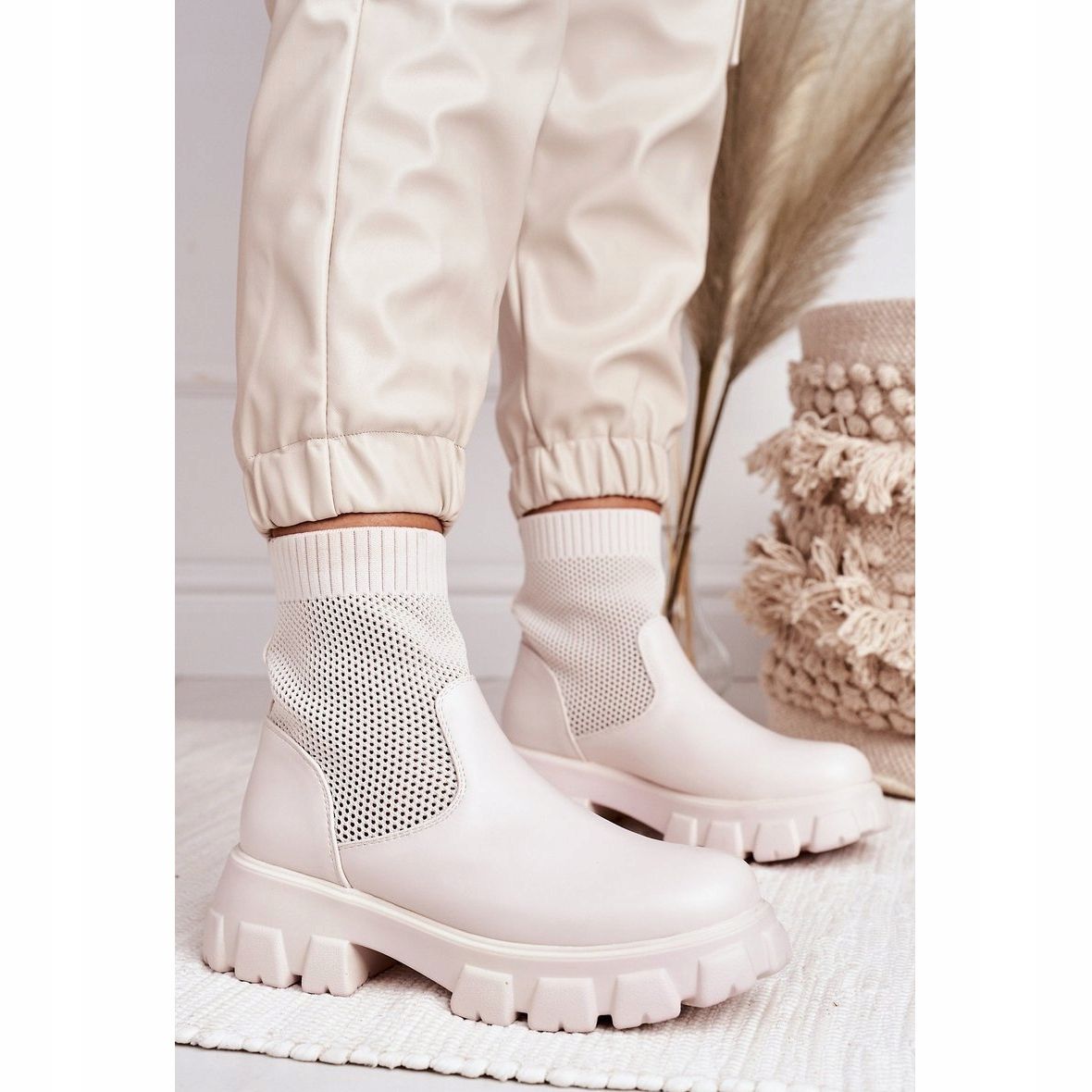Découvrez les bottes chaussettes Worker White Stormy pour femmes - la combinaison parfaite de style et de confort pour chaque occasion ! Ces bottes à plateforme uniques se distinguent par une tige souple ajourée qui s'adapte parfaitement au pied, assurant une liberté de mouvement. La semelle massive en matière synthétique souligne non seulement le design moderne, mais garantit également stabilité et confort lors du port.
