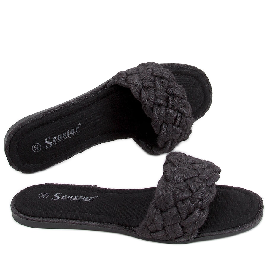 Découvrez le style estival avec les claquettes à cordes pour femme Erika Black ! Ces tongs élégantes à semelle plate sont le choix parfait pour les journées chaudes. Sa finition noire et lisse lui permet de s'agencer à de nombreux styles estivaux, et sa ceinture tressée en fil de lin ajoute un caractère original.
