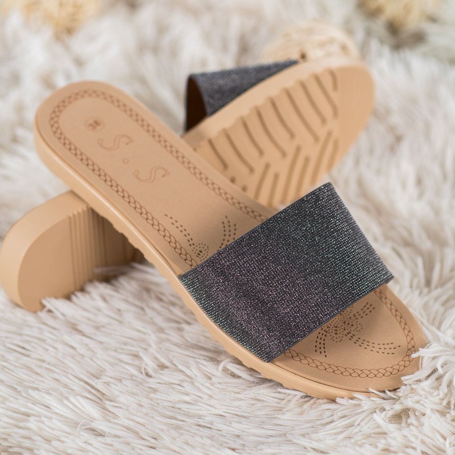 Ce sont des tongs Small Swan d'une élégante couleur noire avec des paillettes, qui seront un complément élégant à tout style d'été et de printemps. Ces chaussures à enfiler classiques se distinguent non seulement par leur confort, mais aussi par leur aspect phénoménal et accrocheur.