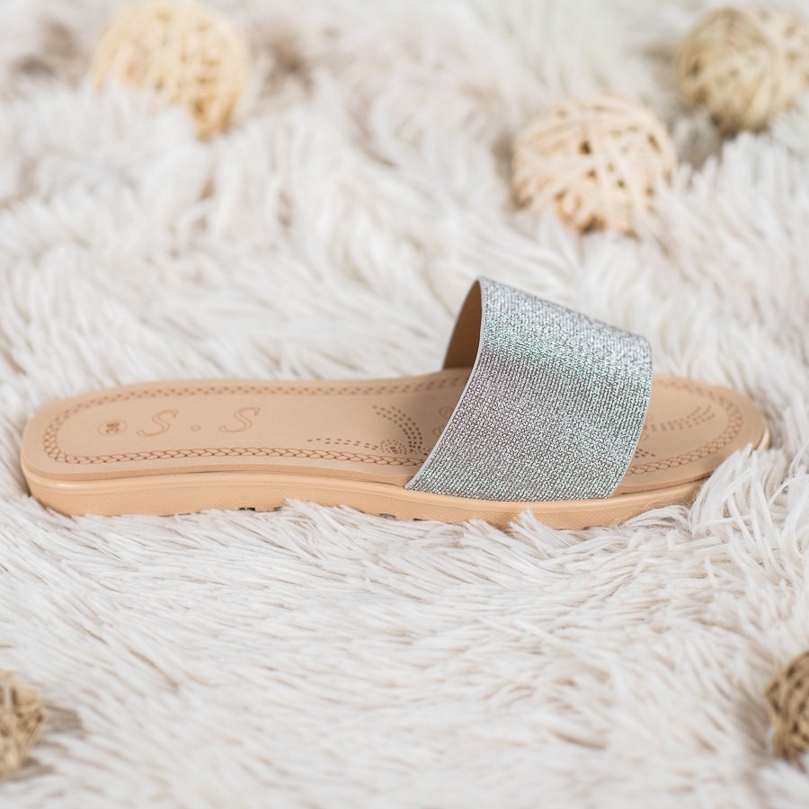 Les éléments décoratifs à paillettes ajoutent de la brillance aux tongs, de sorte qu'elles peuvent être combinées avec succès avec des styles décontractés et élégants. Ces tongs uniques sont le choix parfait pour le printemps et l'été et raviront tous les amateurs d'accessoires de mode.