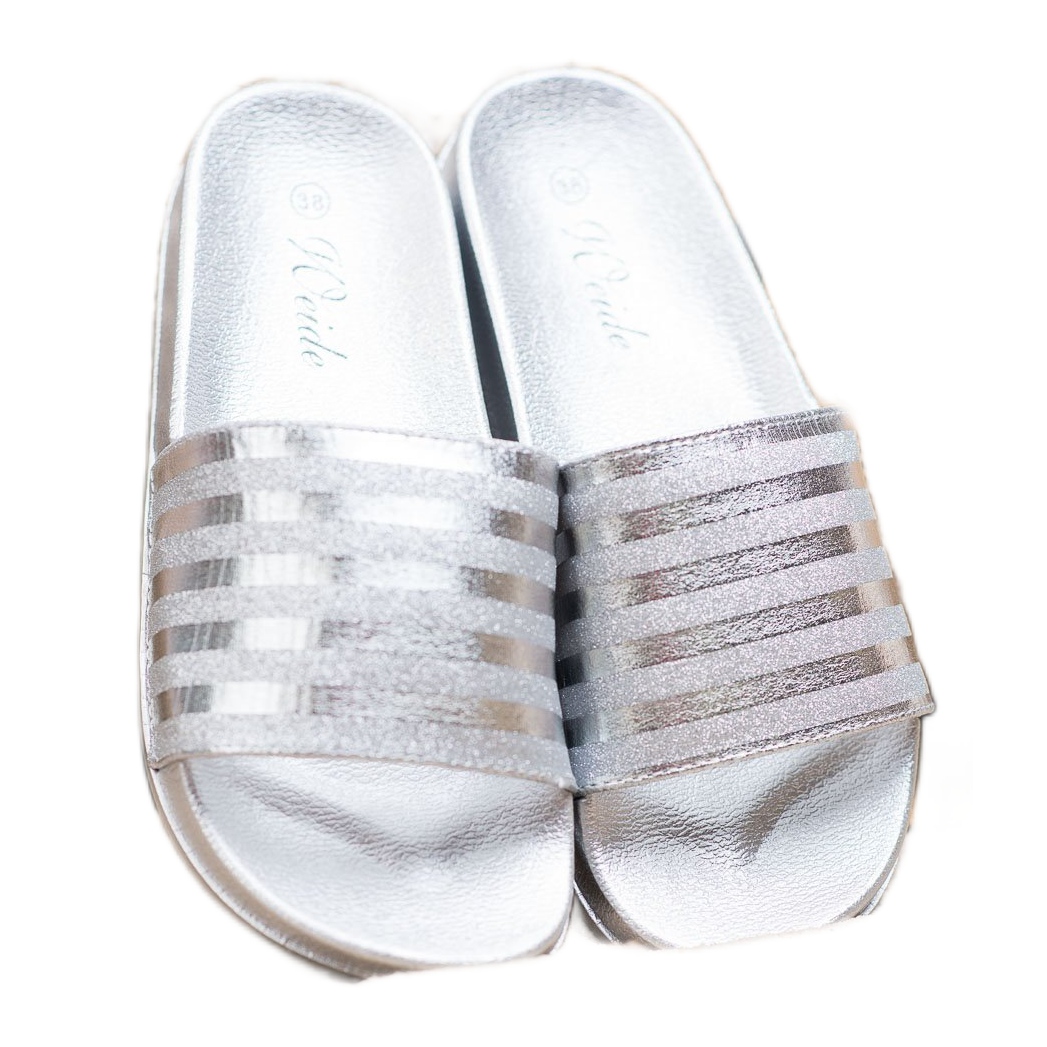 Découvrez l'élégance et le confort avec les Weide Slides With Glitter dans une nuance de gris tendance. Ces claquettes à enfiler combinent un style classique avec un accent unique sous forme de paillettes, ce qui leur confère un caractère unique. Les couleurs gris argenté les permettent de s'adapter parfaitement à une variété de styles estivaux, des shorts de sport aux robes aériennes.
