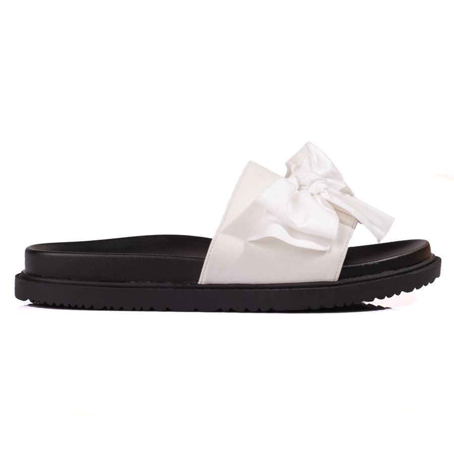 Sans talon, avec un talon ouvert et une fermeture à enfiler, les tongs s'enfilent facilement et sont parfaites pour les journées d'été. La semelle de 2,5 cm de hauteur, équipée d'une bande de roulement, offre stabilité et confort lors de la marche. La semelle intérieure en cuir écologique assure le confort de vos pieds, et la couleur noire de la semelle crée un contraste tendance avec la tige blanche.