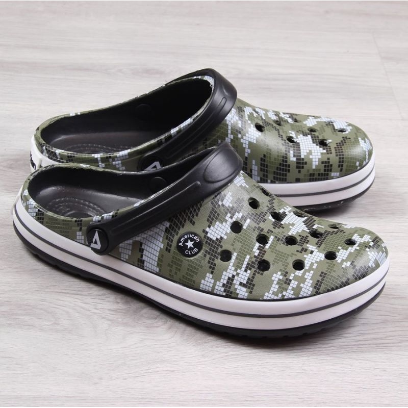 L'American Club JR AM578B Khaki (Moro) tongs les tongs - chaussures d'été légères et confortables pour les garçons. Le modèle AM578B combine un motif de camouflage à la mode dans les tons de kaki avec des solutions idéales pratiques pour les vacances, pour le jardin ou pour la piscine.