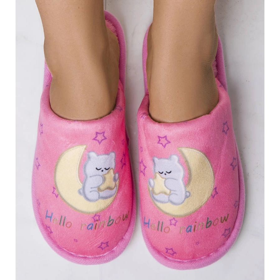 Êtes-vous à la recherche de pantoufles charmantes et chaudes pour des jours plus froids? Rainbow Moon est des pantoufles pour femmes avec un nez rond construit décoré d'une charmante application avec un motif animal. Fabriqués en tissu doux et isolés de l'intérieur, ils offrent un confort et une sensation de chaleur agréable lors du port.