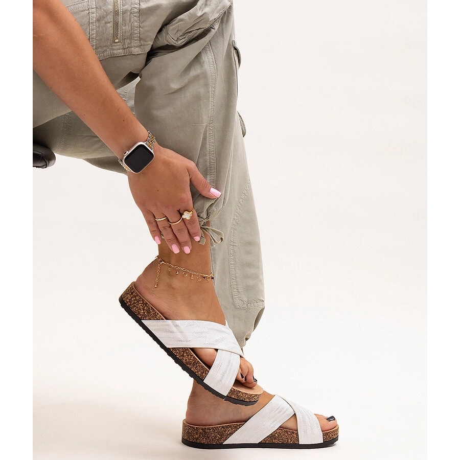 Détails: Chaussons avec semelle en liège brillant Ribera blanc