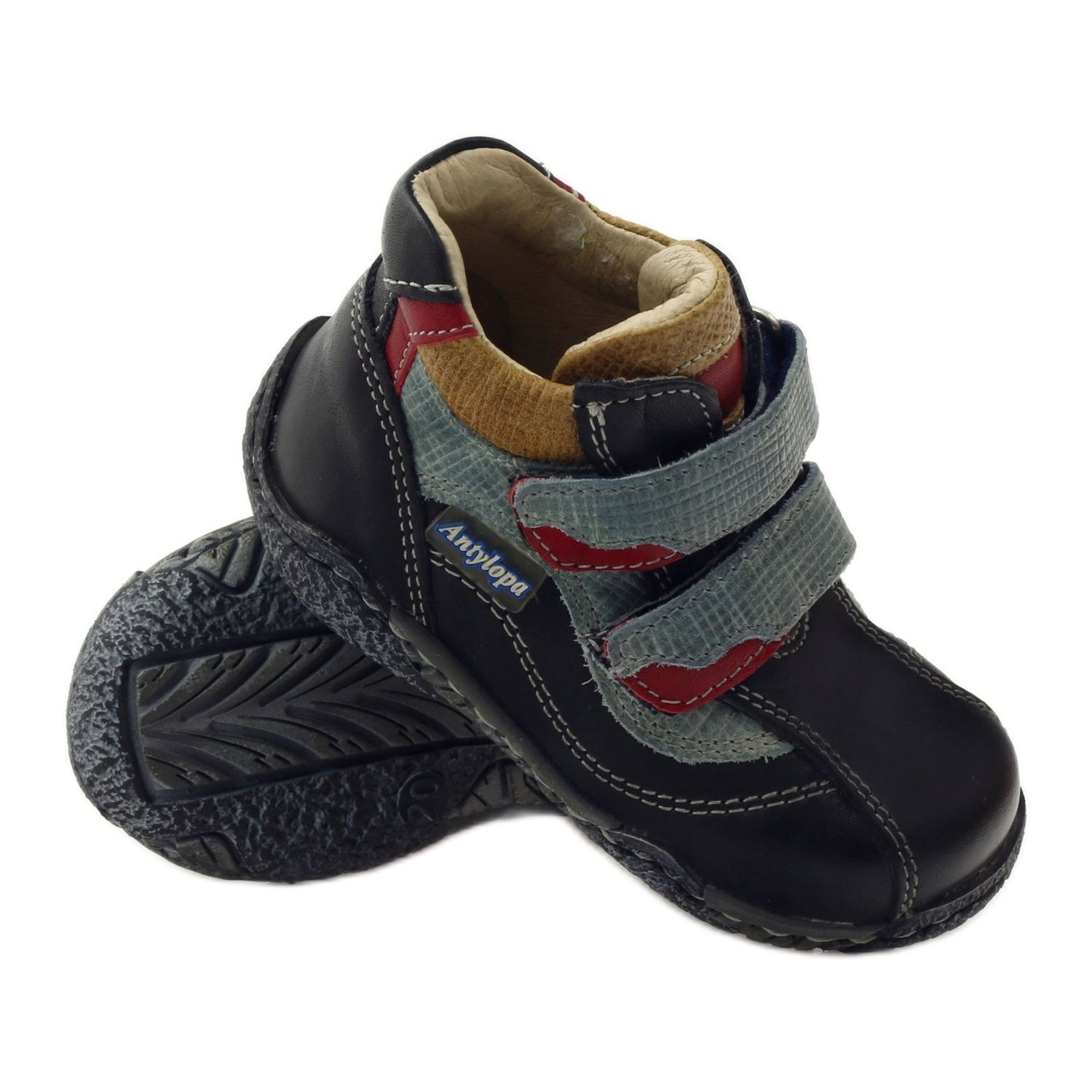 Antylopa Chaussons bébé velcro Antilope bleu marine noir rouge