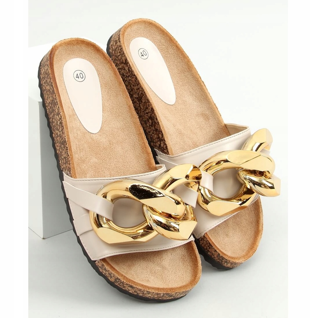 Inna marka Chaussons Beiges avec une chaîne épaisse CK201 Beige