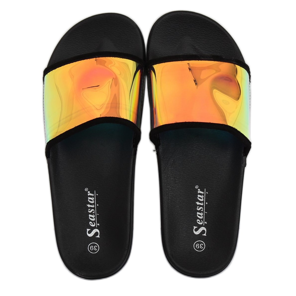 Ce modèle est doté d'une large ceinture avec une décoration holographique accrocheuse qui attire l'attention et ajoute du caractère à n'importe quel style. Grâce à la semelle flexible et profilée, porter ces tongs est un pur plaisir : vous aurez l'impression d'être sur des nuages, même pendant une longue journée en plein air.