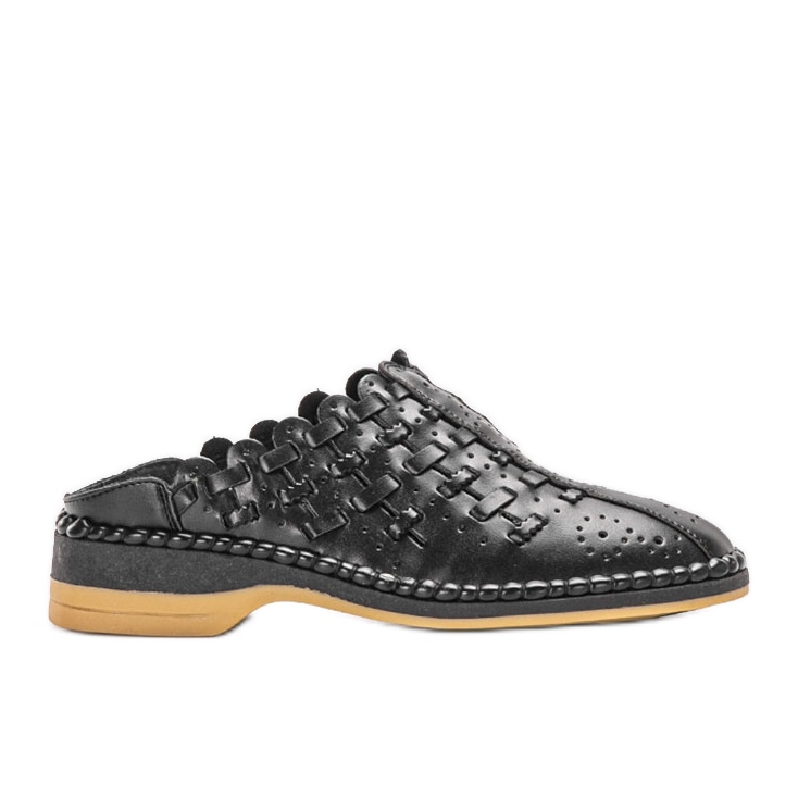 Black Breno Openwork Flaps - Le modèle Fernandes (7803) est une base légère et élégante pour l'été et les stylisations de tous les jours. La tige en cuir écologique ouverte leur donne un personnage frais et féminin, et les couleurs noires classiques fonctionneront à la fois pour les jeans et les robes d'été.