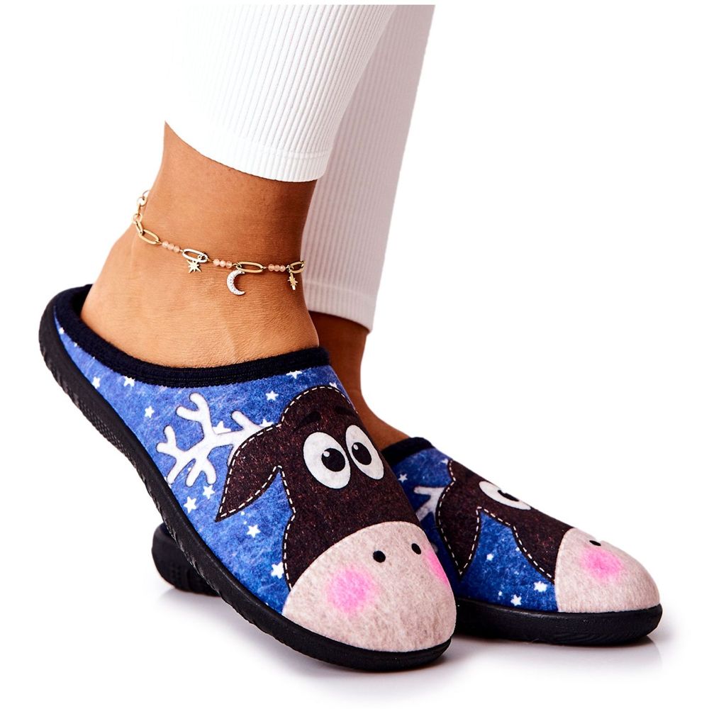 Papci Elodie pour femmes - isolée, avec un motif de renne, bleu