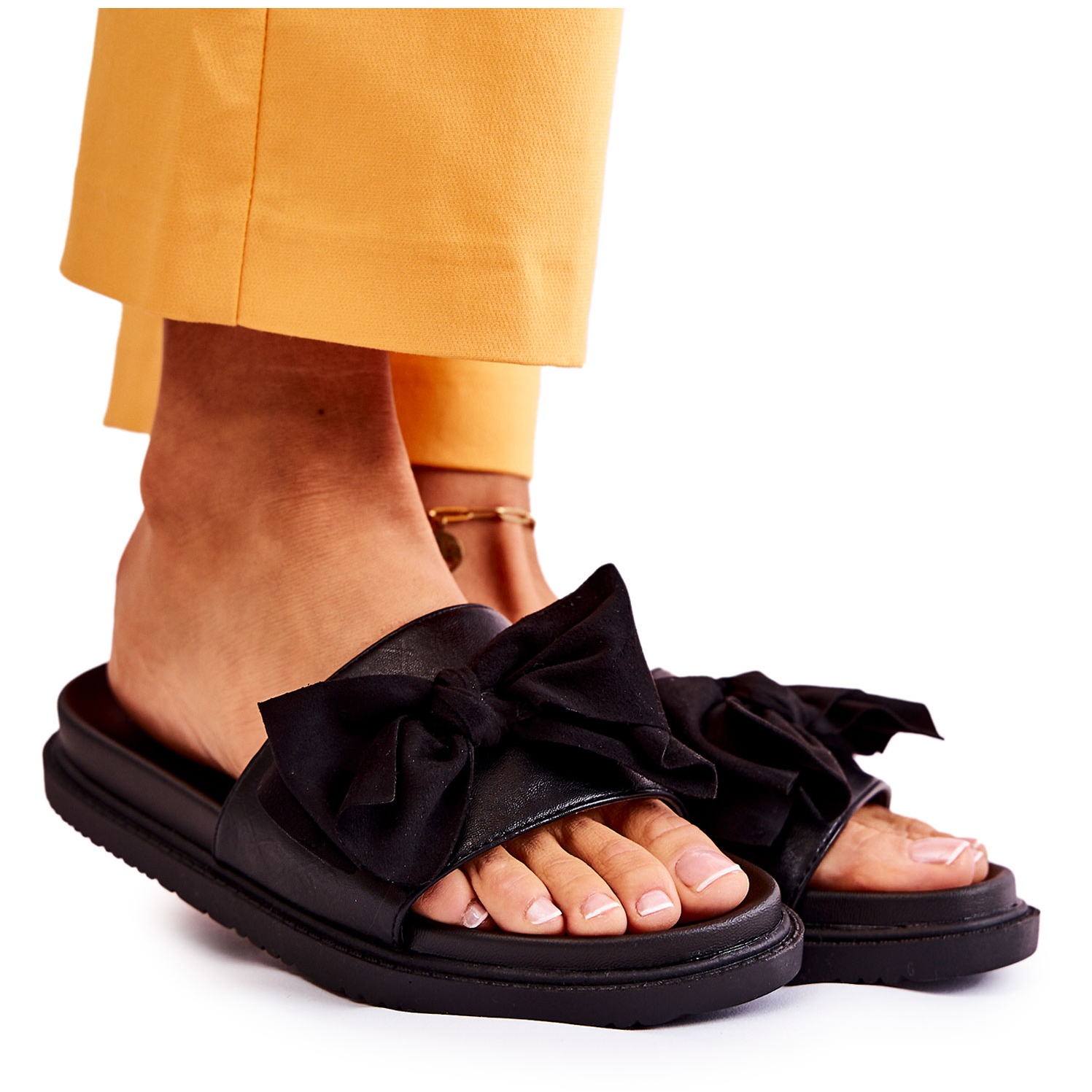 PJ1 Chaussons Classiques En Cuir Pour Femme Avec Un Nœud Noir Dessy