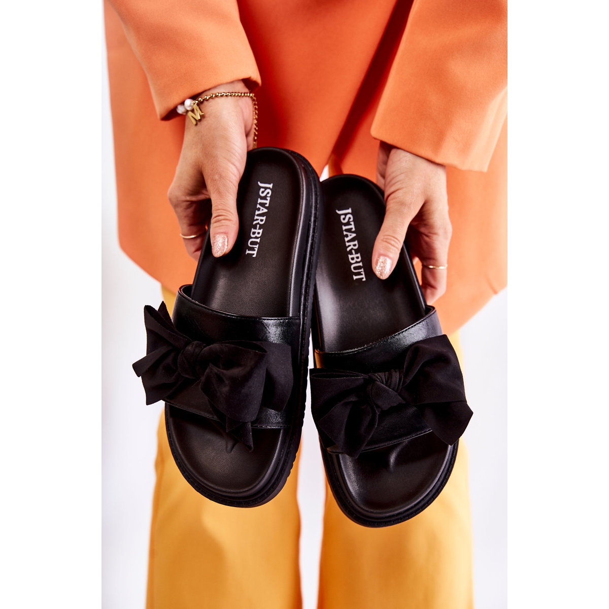 PJ1 PJ1 Chaussons Classiques En Cuir Pour Femme Avec Un Nœud Noir Dessy le noir