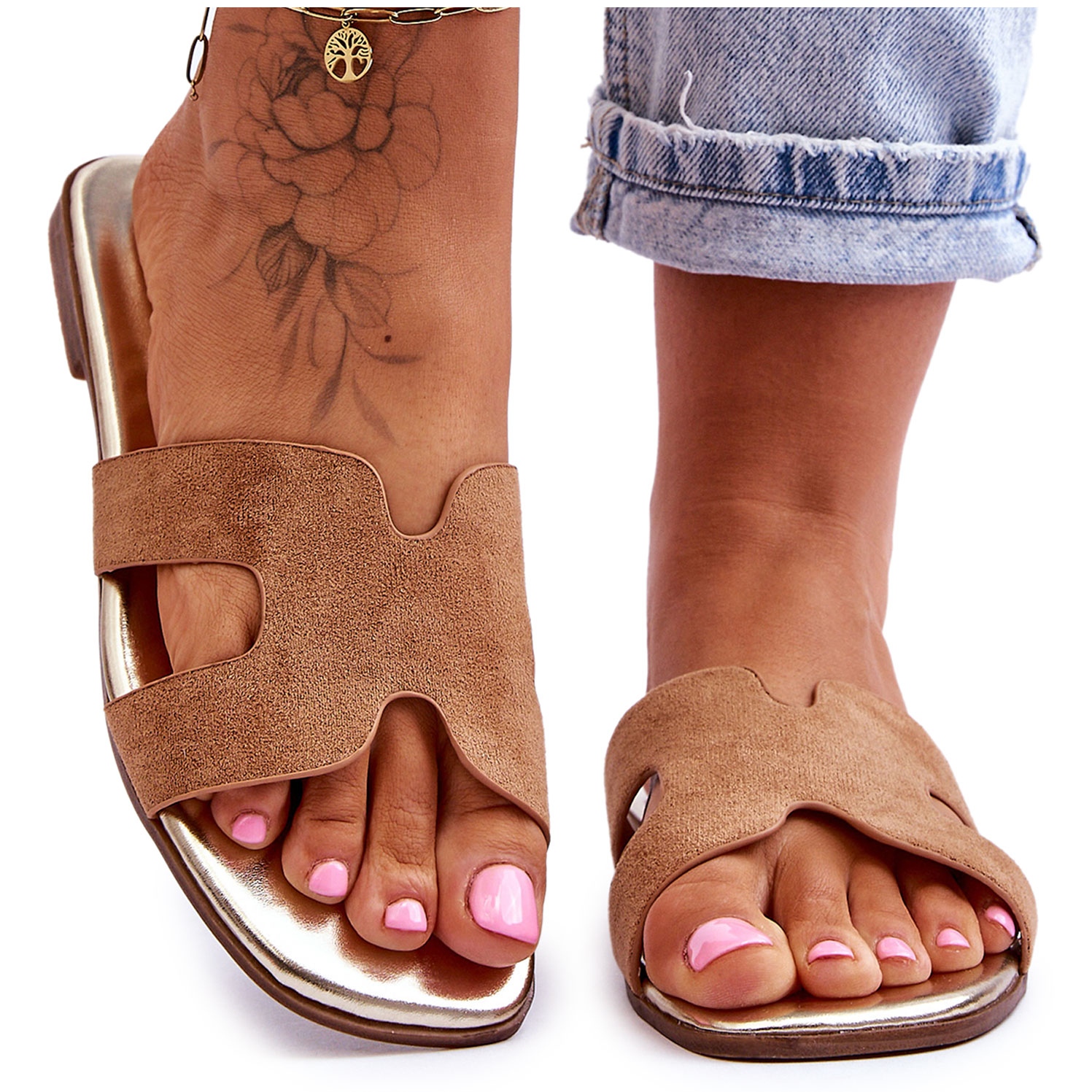 La couleur beige tendance des chaussures se marie parfaitement avec les couleurs estivales et rend les tongs faciles à assortir avec la plupart des vêtements. De plus, les accents dorés leur confèrent un caractère luxueux. Le cuir suédé écologique est un choix responsable, vous permettant de profiter d'un aspect similaire au daim naturel, tout en respectant l'environnement.