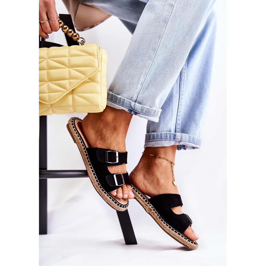 Ce sont des tongs classiques pour femmes en daim du fabricant PG1, qui allient élégance et confort. Le modèle noir, fabriqué en éco-daim de haute qualité, est parfait pour un style quotidien.