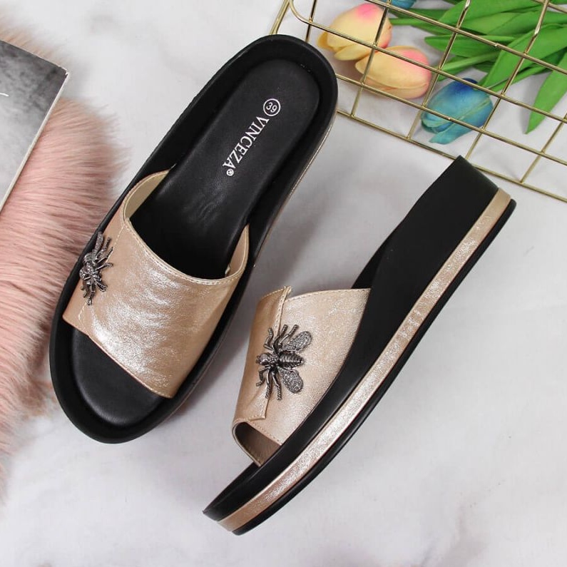 Détails: Chaussons compensés avec un insecte Vinceza W JAN118B doré d'or