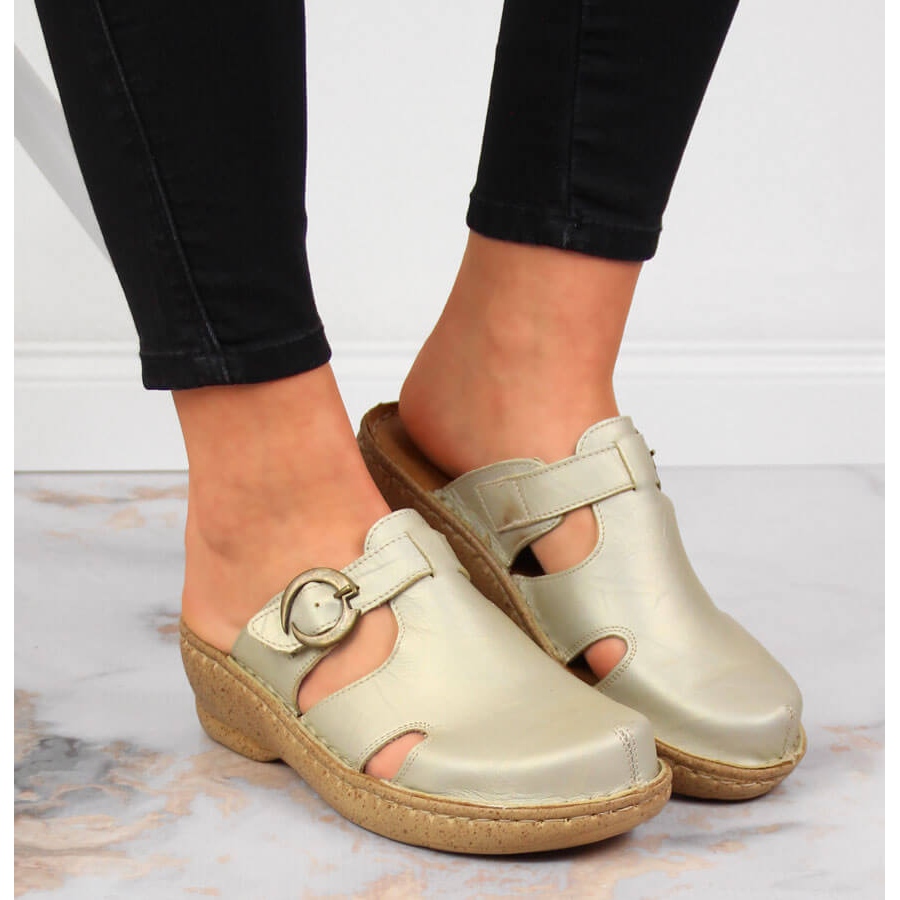 Détails: Chaussons compensés dorés en cuir Łukbut 666 d'or